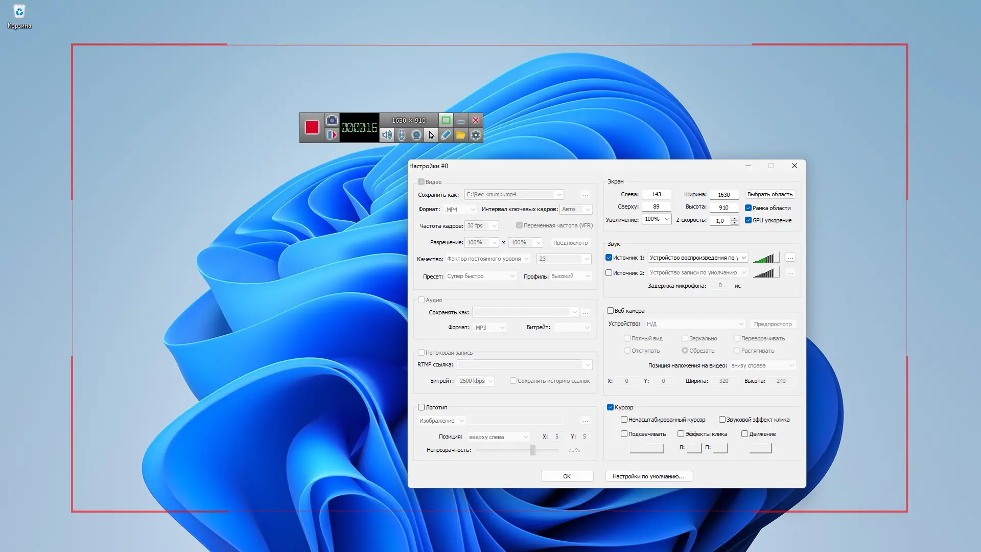 Работа с ZD Soft Screen Recorder