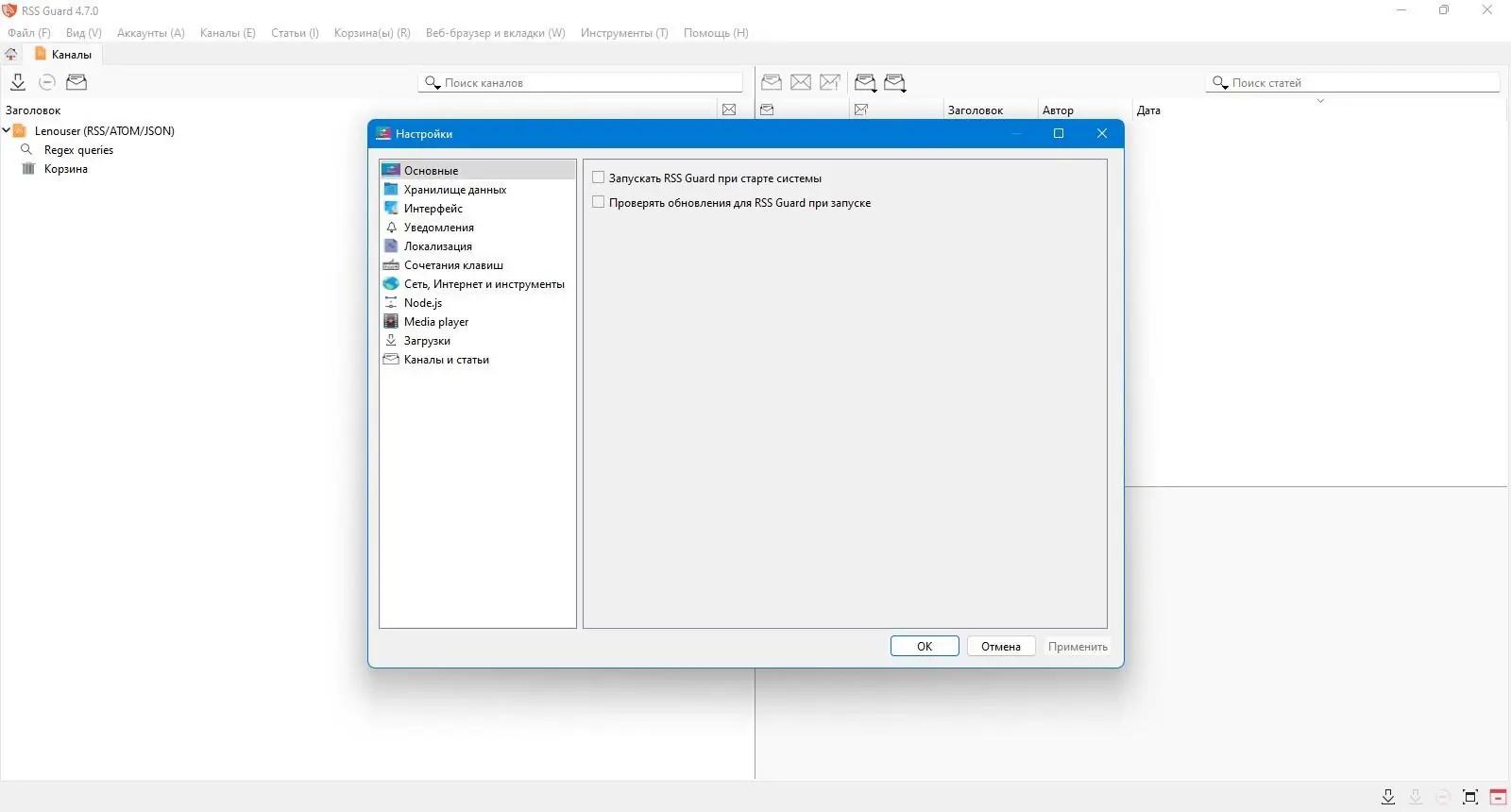 - Интеграция с системным треем и уведомлениями о новых статьях