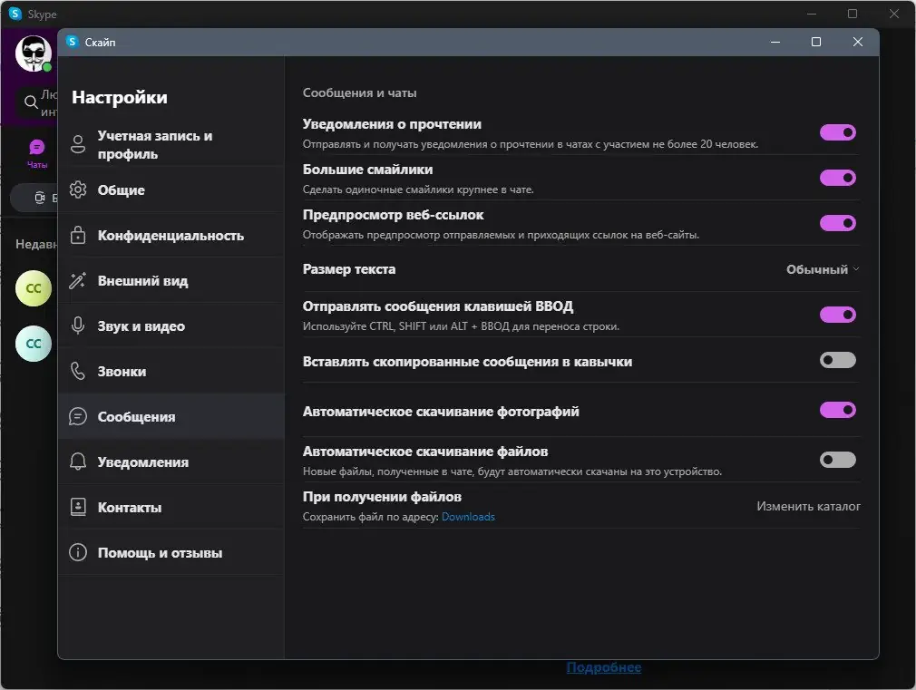 Работа с Skype