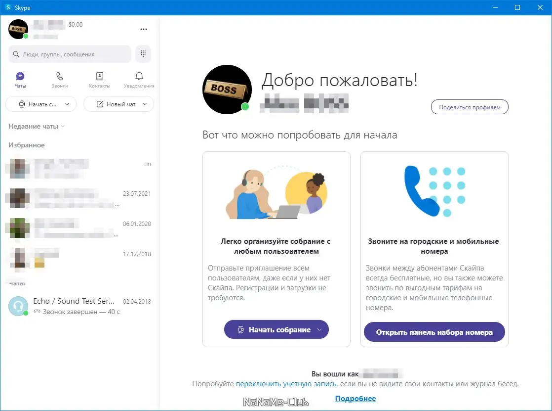 Работа с Skype