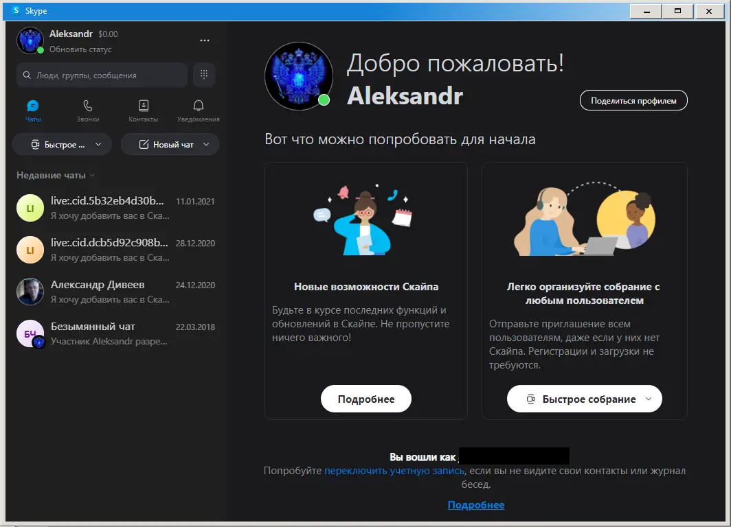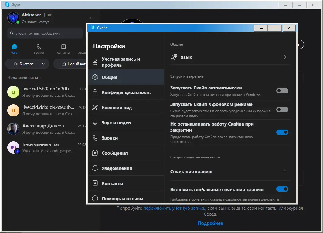 Работа с Skype