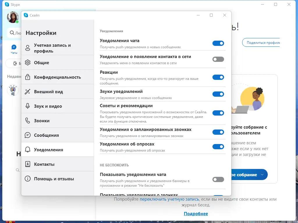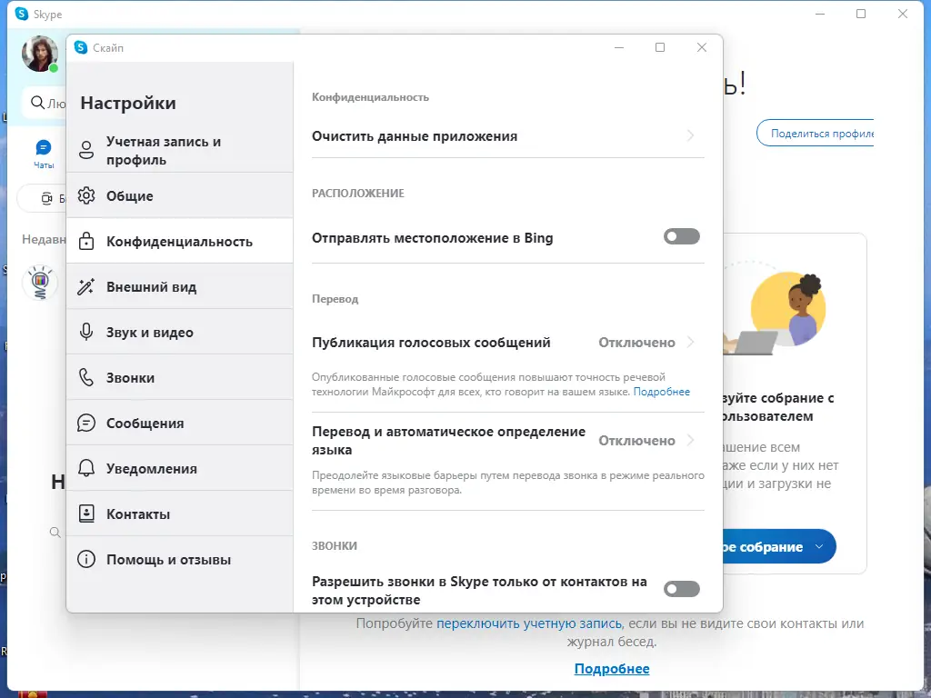 Для начала использования достаточно зарегистрировать учётную запись и добавить контакты. Звонки и видеочаты запускаются одним кликом, а текстовые сообщения можно отправлять в любое время. Пользователи могут обмениваться файлами любого типа и размера, демонстрировать экран во время совещаний, оставлять голосовые и видеосообщения. Дополнительно доступны функции перевода сообщений, интеграция с Outlook.com и использование Skype for business. Интерфейс интуитивно понятен, поддерживает русский язык и адаптирован под различные устройства. Через настройки можно управлять уведомлениями, приватностью и параметрами подключения. Особенности вроде Skype Connect позволяют подключать корпоративные АТС, а расширение для браузера упрощает доступ к функциям из web-среды.