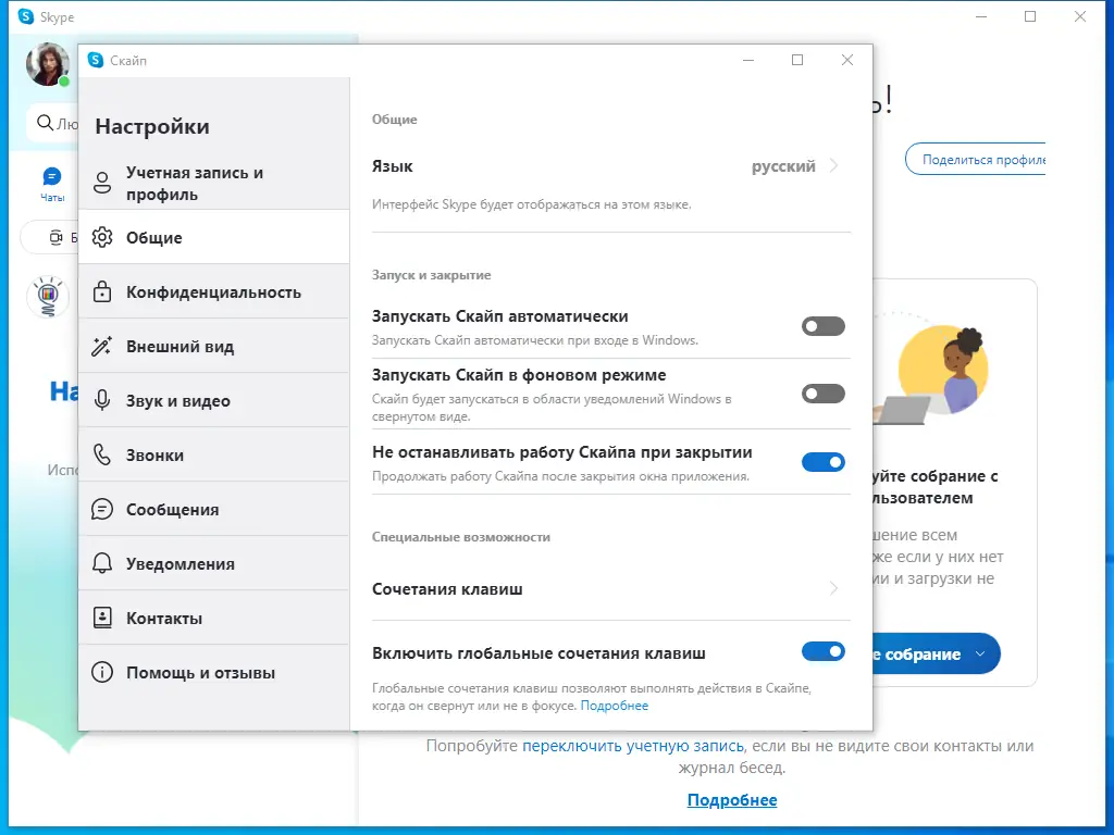 Работа с Skype