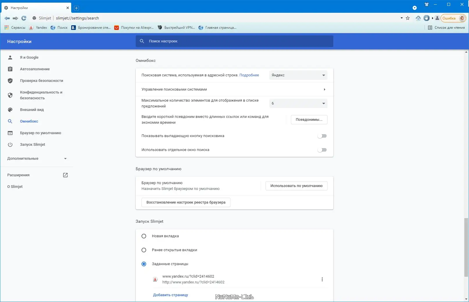 Работа с Slimjet