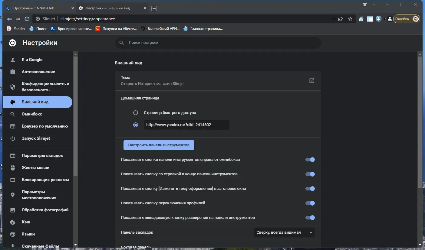 Использование Slimjet не требует специальных навыков. После запуска браузер предлагает настроить страницу «Новая вкладка», где можно выбрать фоновое изображение, указать количество кнопок быстрого доступа и добавить поисковые системы. Панель инструментов легко настраивается — пользователь может добавлять кнопки для часто используемых функций, включая перевод, загрузку видео и работу с формами. QuickFill позволяет автоматически заполнять формы, сохраняя данные учётных записей в виде файлов, что удобно при входе на сайты. Загрузка потокового видео поддерживается в разных форматах и разрешениях, включая возможность извлечения аудиодорожки в формате mp3. Погодный виджет отображает актуальные данные без необходимости заходить на специализированные ресурсы.
