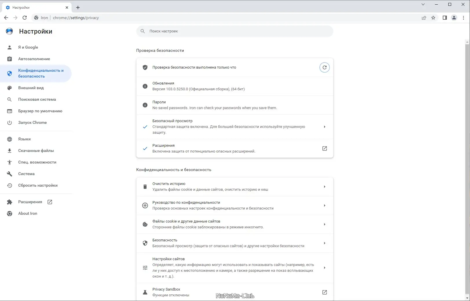 SRWare Iron не отправляет отчеты о сбоях, не отслеживает поисковые запросы и не синхронизирует данные с облачными сервисами.