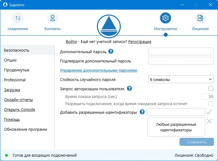 - SupRemo можно установить как службу Windows, что обеспечивает постоянный доступ к удалённому ПК даже при отсутствии пользователя.