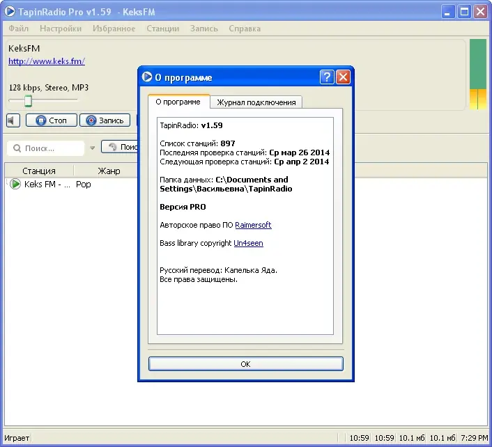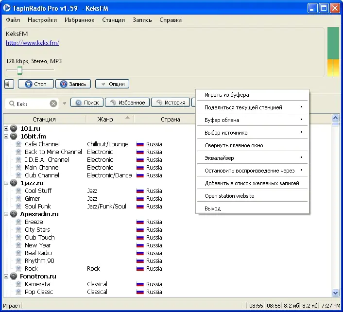 Программа автоматически проверяет обновления и добавляет новые станции в каталог.