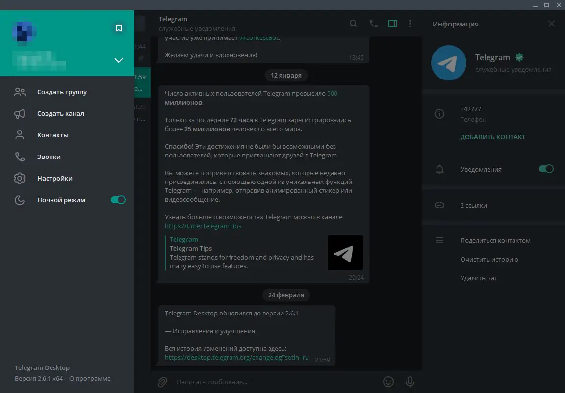 Работа с Telegram Desktop