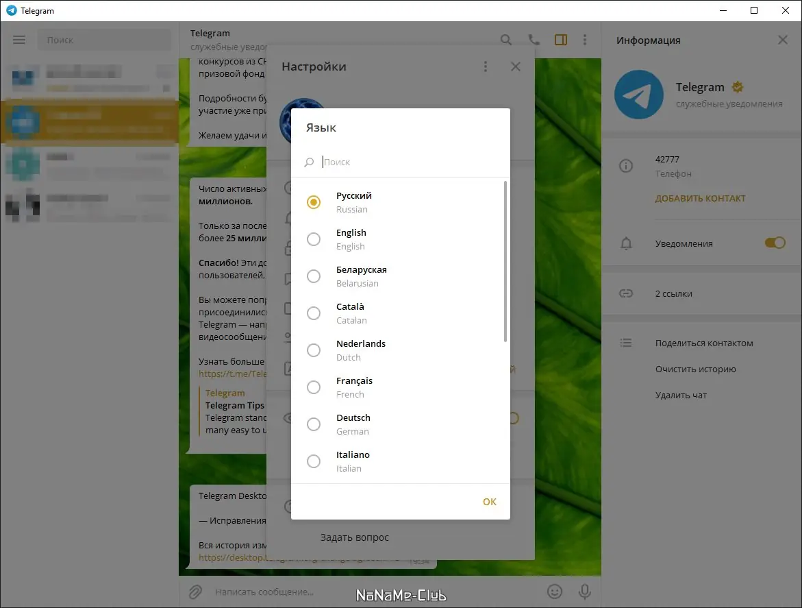 Работа с Telegram Desktop
