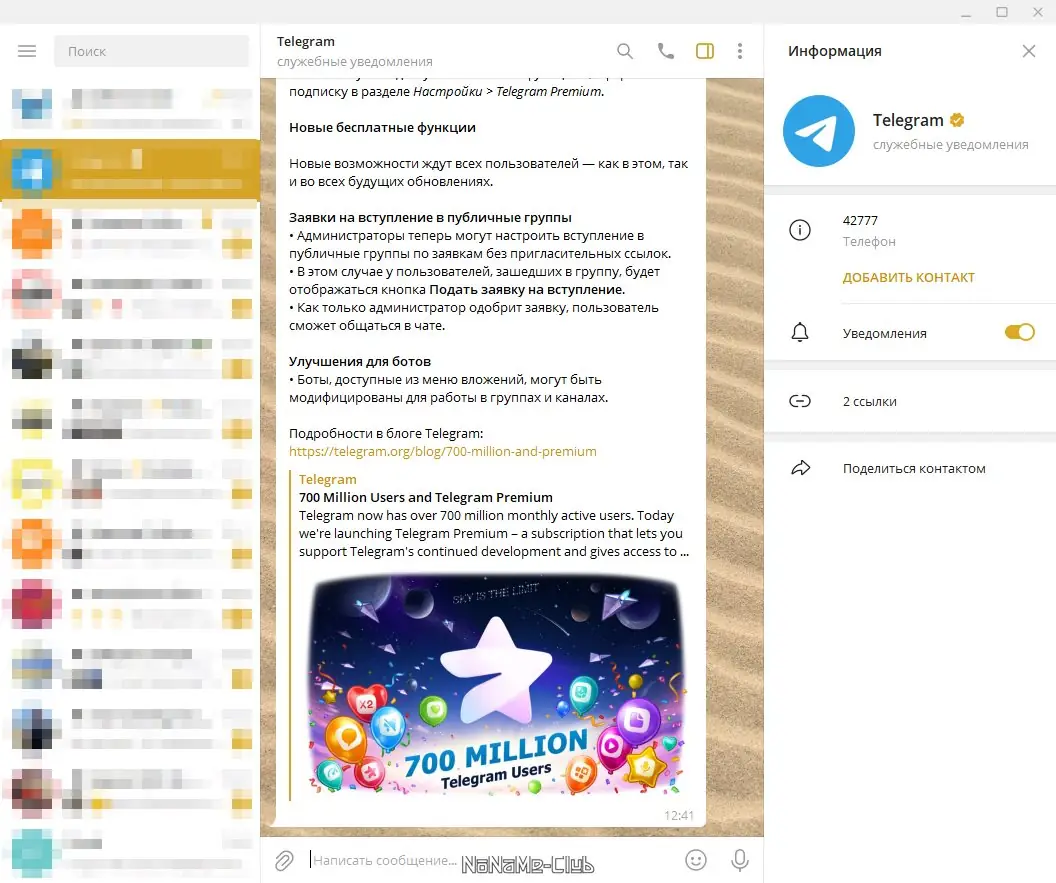 - Возможность создания групп до 200 000 участников и каналов для массовой рассылки