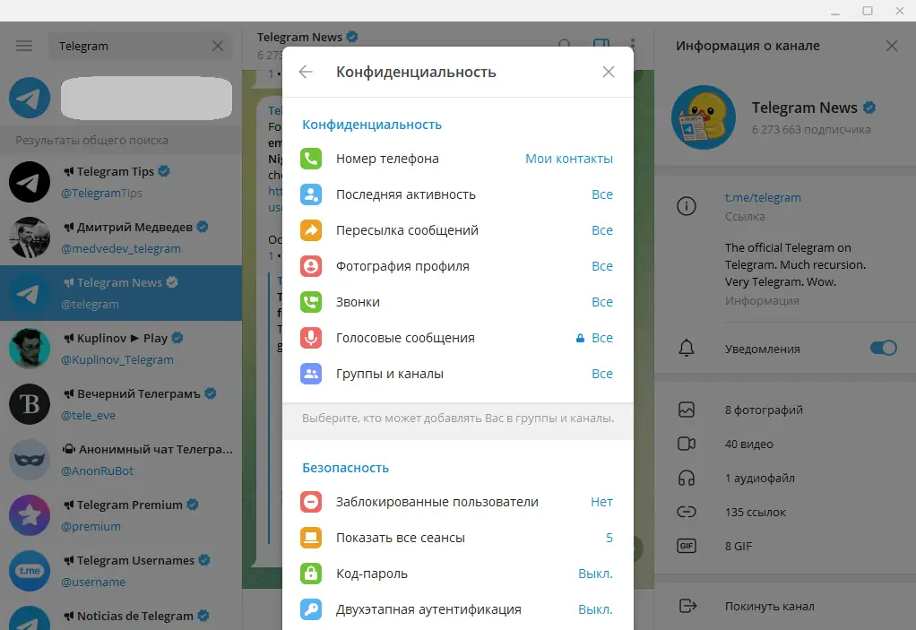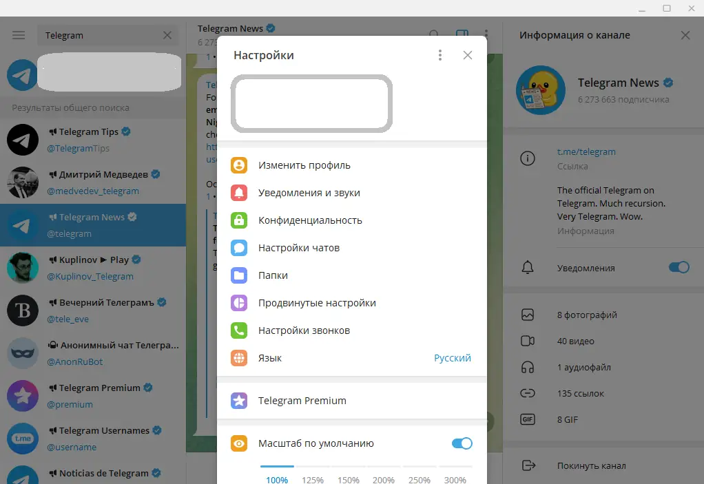 Работа с Telegram Desktop