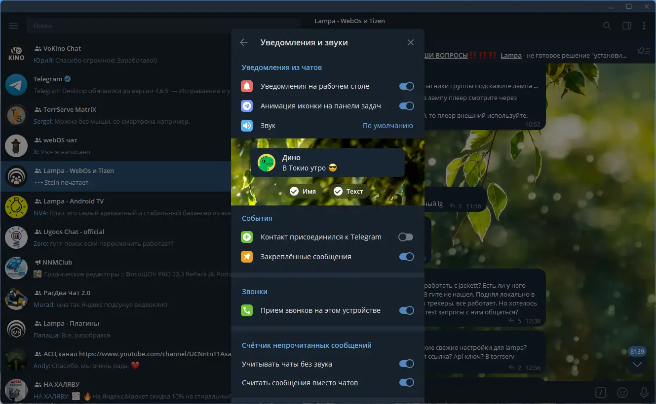 Одним из главных преимуществ Telegram Desktop является его производительность и стабильность даже при активной передаче данных. Программа работает быстро на системах с различными характеристиками и поддерживает работу в фоновом режиме. Также стоит отметить гибкость настроек уведомлений, тем и приватности.