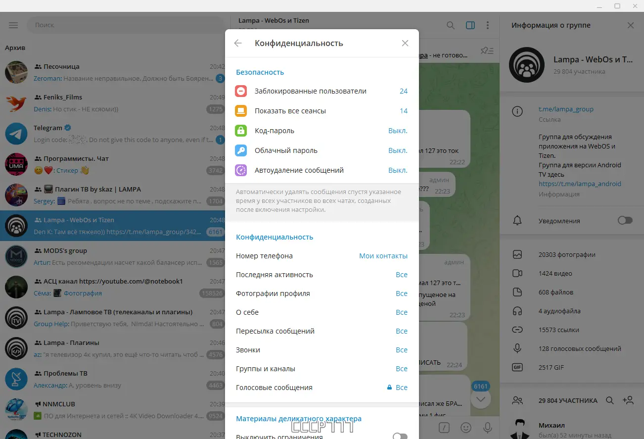 Работа с Telegram Desktop
