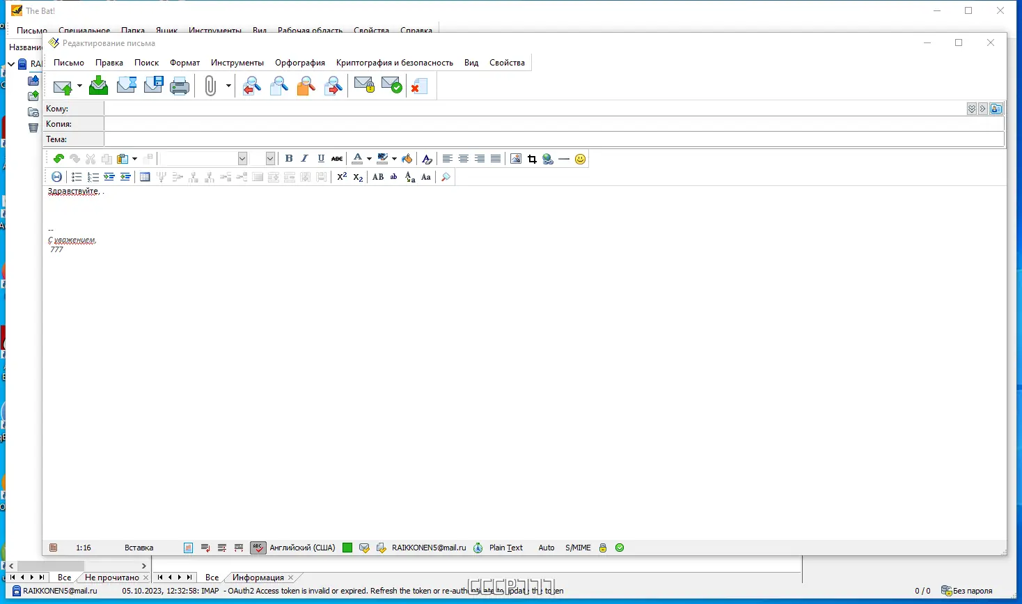 The Bat — мощный и защищённый почтовый клиент, ориентированный на пользователей, которым важны безопасность, функциональность и контроль над электронной перепиской. Программа поддерживает широкий спектр протоколов, обеспечивает надёжное шифрование и предлагает гибкие инструменты для автоматизации обработки писем. Благодаря интуитивному интерфейсу и высокой степени настройки, The Bat подходит как для частного использования, так и для корпоративных сред, где требуется строгий контроль над данными и эффективная работа с большим объёмом почты.