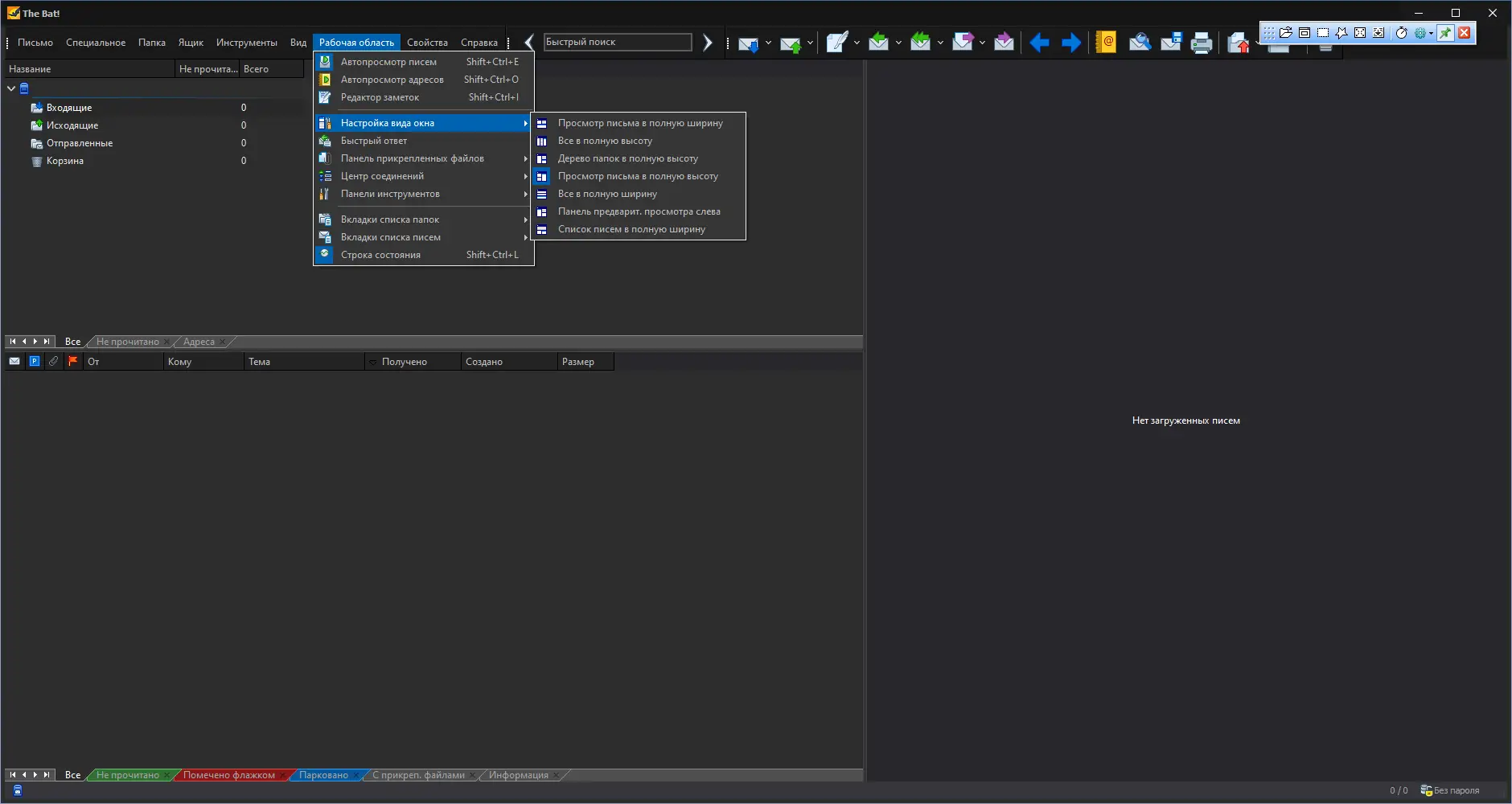 The Bat! — это мощный почтовый клиент с продвинутыми функциями шифрования, фильтрации и автоматизации, разработанный для пользователей, которым важны безопасность, удобство и контроль над электронной перепиской. Программа поддерживает работу с множеством протоколов, предлагает собственный модуль просмотра HTML и изображений, а также включает инструменты для эффективного управления большим объемом писем. Благодаря гибкой настройке интерфейса и автоматизации рутинных задач, The Bat! подходит как для личного, так и для корпоративного использования.