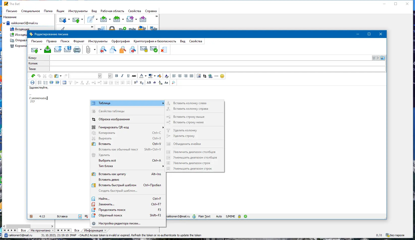 Работа с The Bat начинается с простой настройки учетной записи: достаточно ввести адрес электронной почты, пароль и выбрать тип сервера. Программа автоматически определяет параметры подключения для многих провайдеров. После этого пользователь может сразу приступить к чтению и отправке писем. С помощью мастера фильтров можно создать правила сортировки по отправителю, теме или ключевым словам. Шаблоны сообщений и быстрые макросы ускоряют подготовку ответов. Для шифрования используется встроенный менеджер ключей, позволяющий управлять сертификатами PGP и S/MIME. Резервное копирование настроек и архивация почты выполняются в один клик, а синхронизация между устройствами сохраняет согласованность данных.