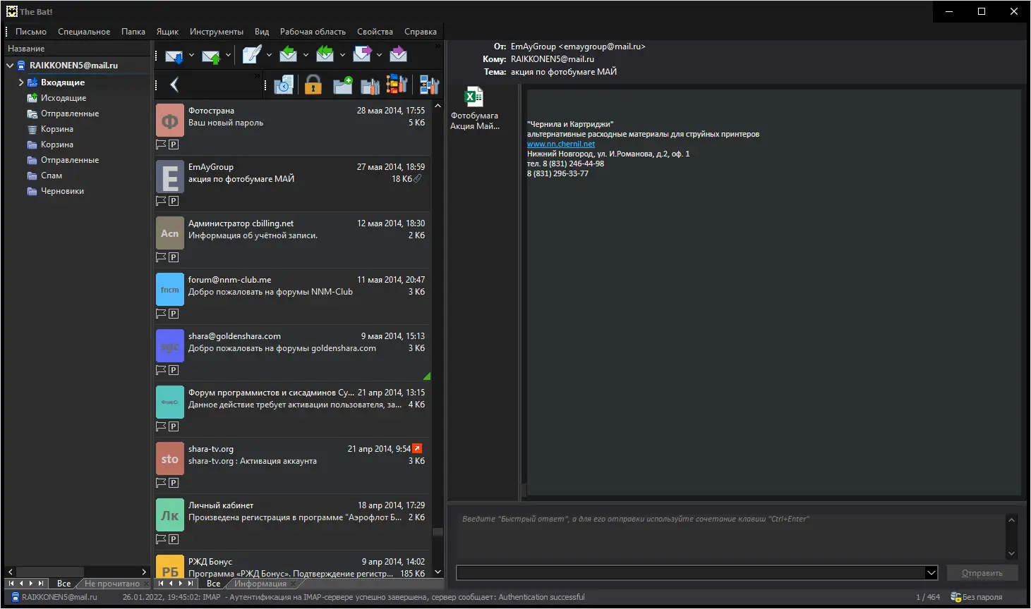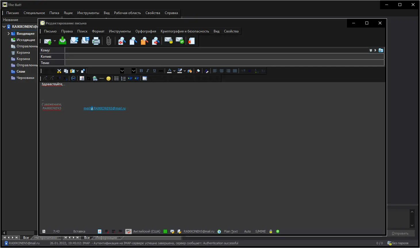 The Bat — надежный почтовый клиент с мощной системой фильтрации, шифрования и автоматизации, предназначенный для эффективной работы с большим объемом писем. Программа обеспечивает высокий уровень безопасности, поддерживает современные протоколы шифрования, работает с различными кодировками и позволяет настроить обработку почты под индивидуальные потребности. Благодаря встроенным инструментам защиты от вирусов, поддержке цифровых подписей и удобной системе резервного копирования, The Bat стал выбором пользователей, которым важна конфиденциальность и стабильность. Программу можно скачать на официальной странице.