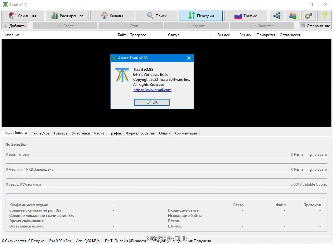 Tixati — это бесплатный торрент-клиент с открытым исходным кодом, предназначенный для эффективной загрузки и управления файлами в сети BitTorrent. Программа отличается минимальным потреблением системных ресурсов, отсутствием рекламы и высокой степенью настраиваемости интерфейса и сетевых параметров. Поддержка современных протоколов и расширений делает её удобным решением для повседневного использования в качестве основного клиента для torrent-раздач.