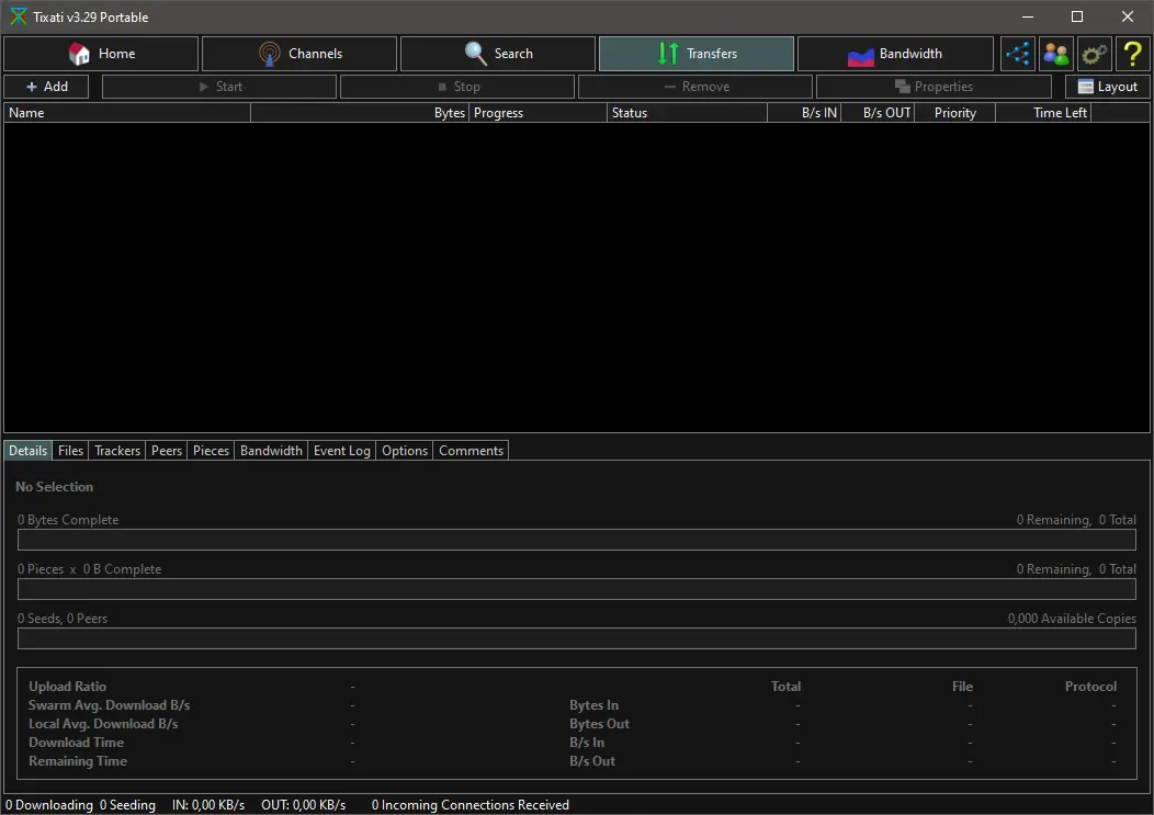 Программа доступна для бесплатного скачивания в стандартной и портативной версии. Portable-сборка позволяет запускать Tixati с флешки без установки, сохраняя все настройки в одной папке. Это удобно для использования на разных компьютерах без необходимости повторной конфигурации. Портативный режим активируется наличием специального файла tixati_portable_mode.txt, который нельзя удалять. Что это за программа — становится понятно сразу: это эффективный, прозрачный и безопасный способ работы с торрент.