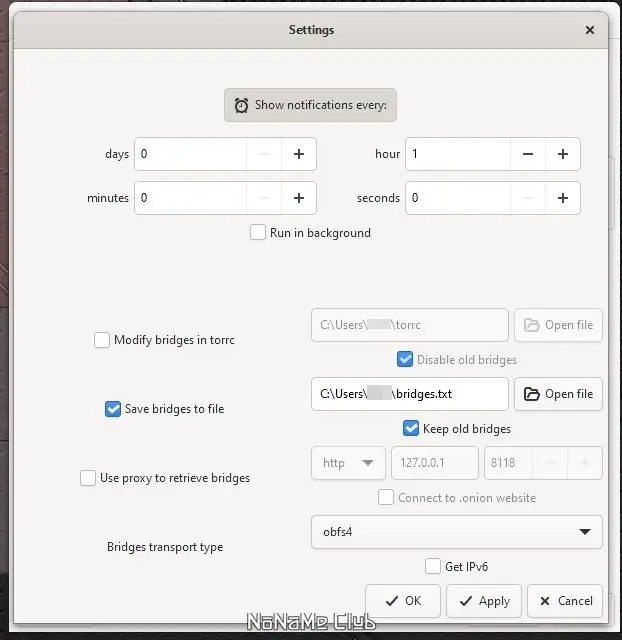 - Автоматически обновляет конфигурационный файл torrc при получении новых мостов.