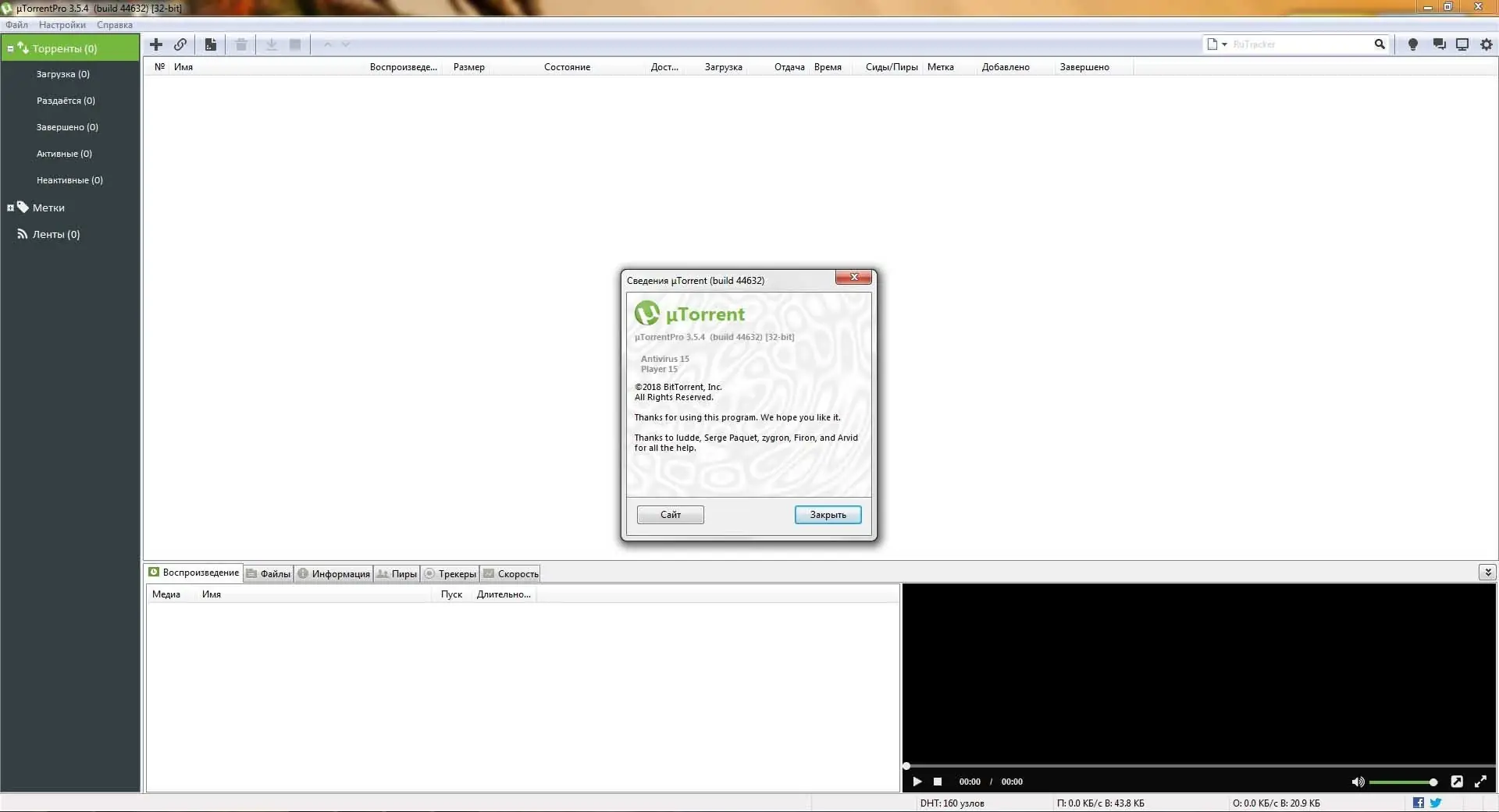 - Поддержка DHT позволяет подключаться к раздачам без участия центрального трекера