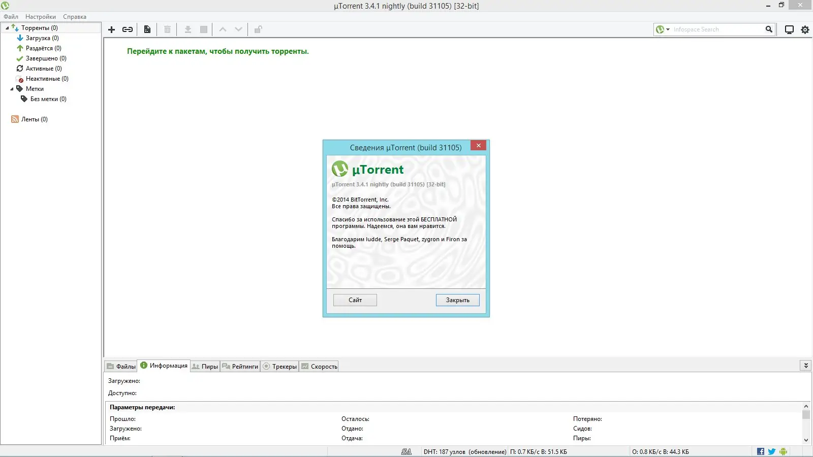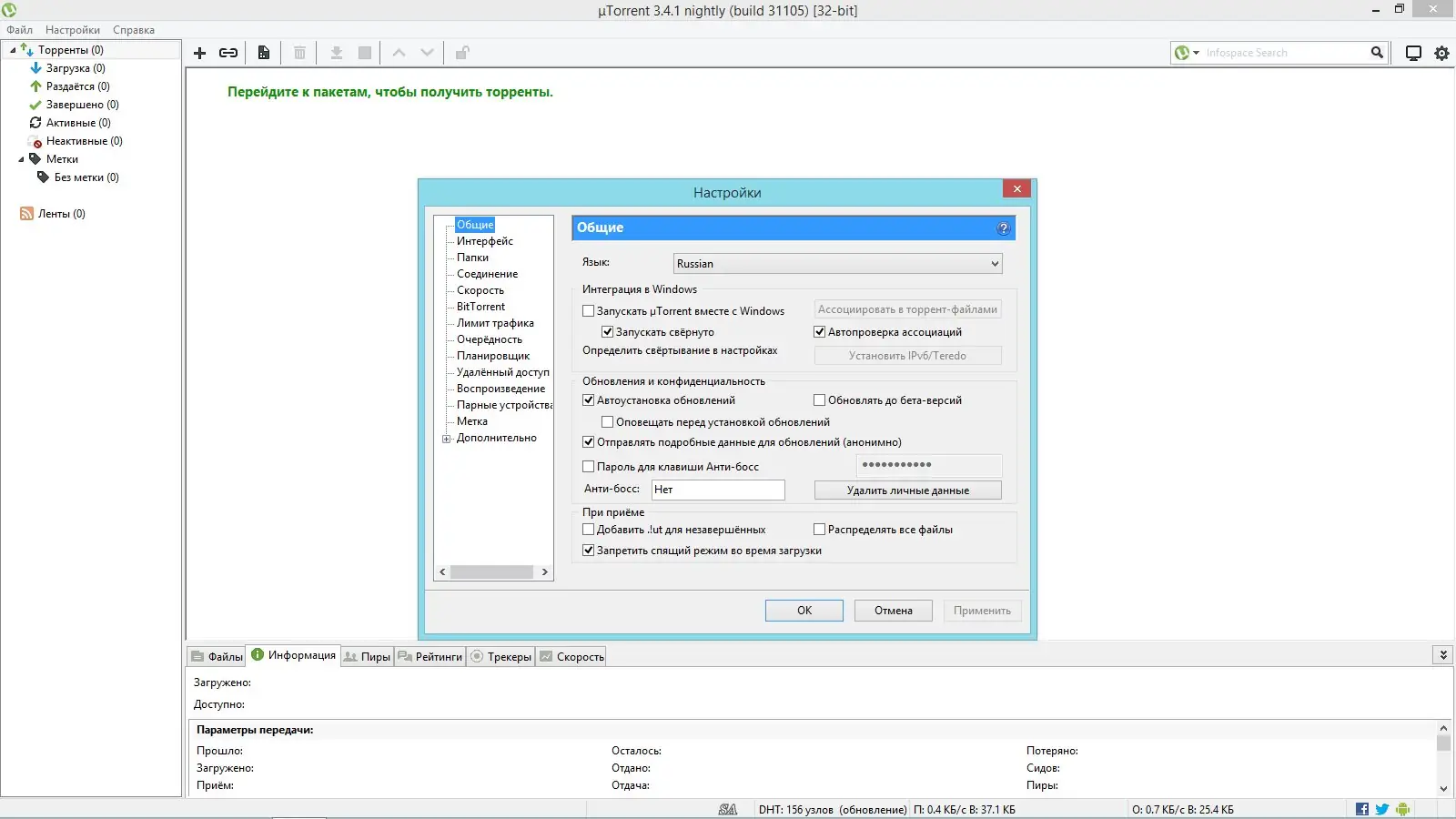 Программа работает независимо от трекеров благодаря поддержке DHT и расширенных протоколов.
