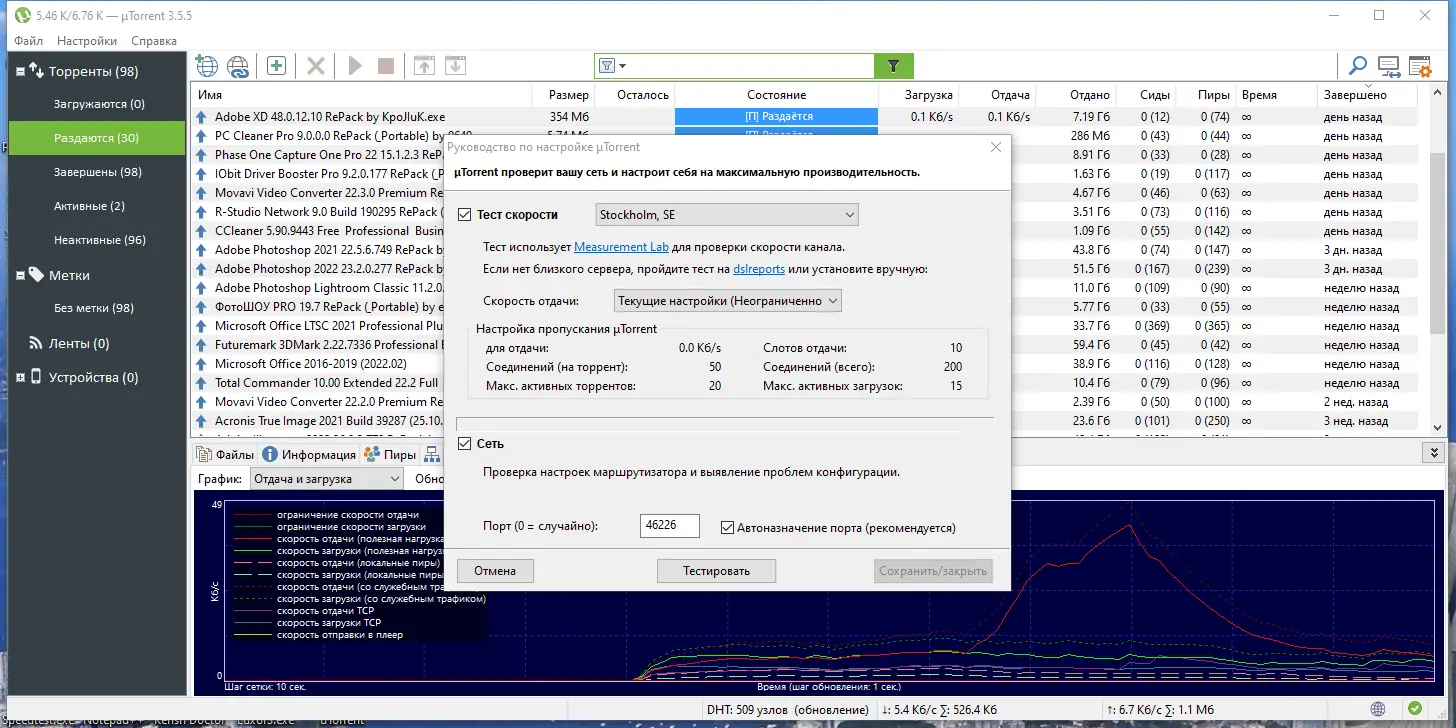 - Работа без участия трекера за счёт поддержки DHT, что расширяет доступ к раздачам.