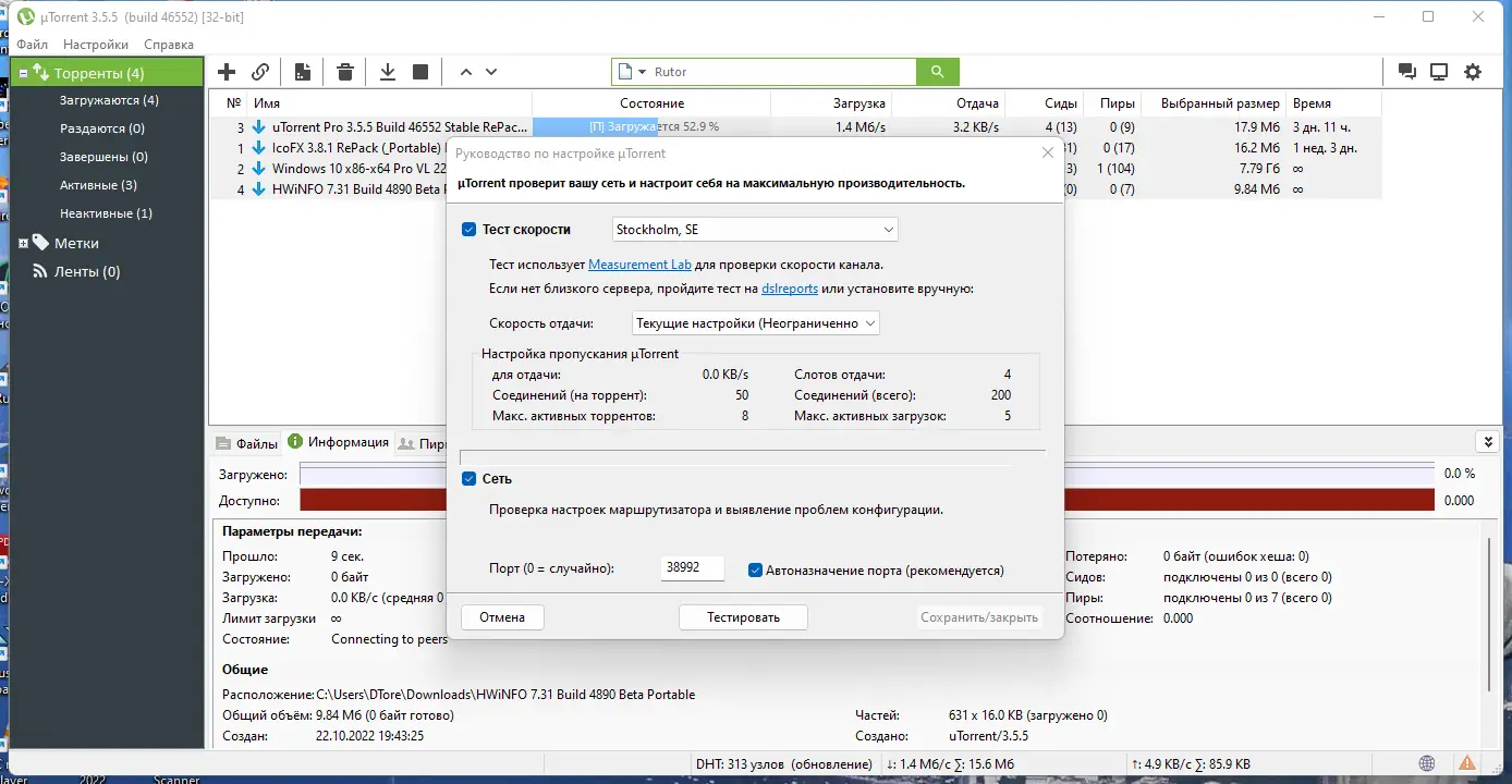 - Поддержка DHT и расширенного протокола обеспечивает соединение с пирами без необходимости привязки к центральному трекеру.