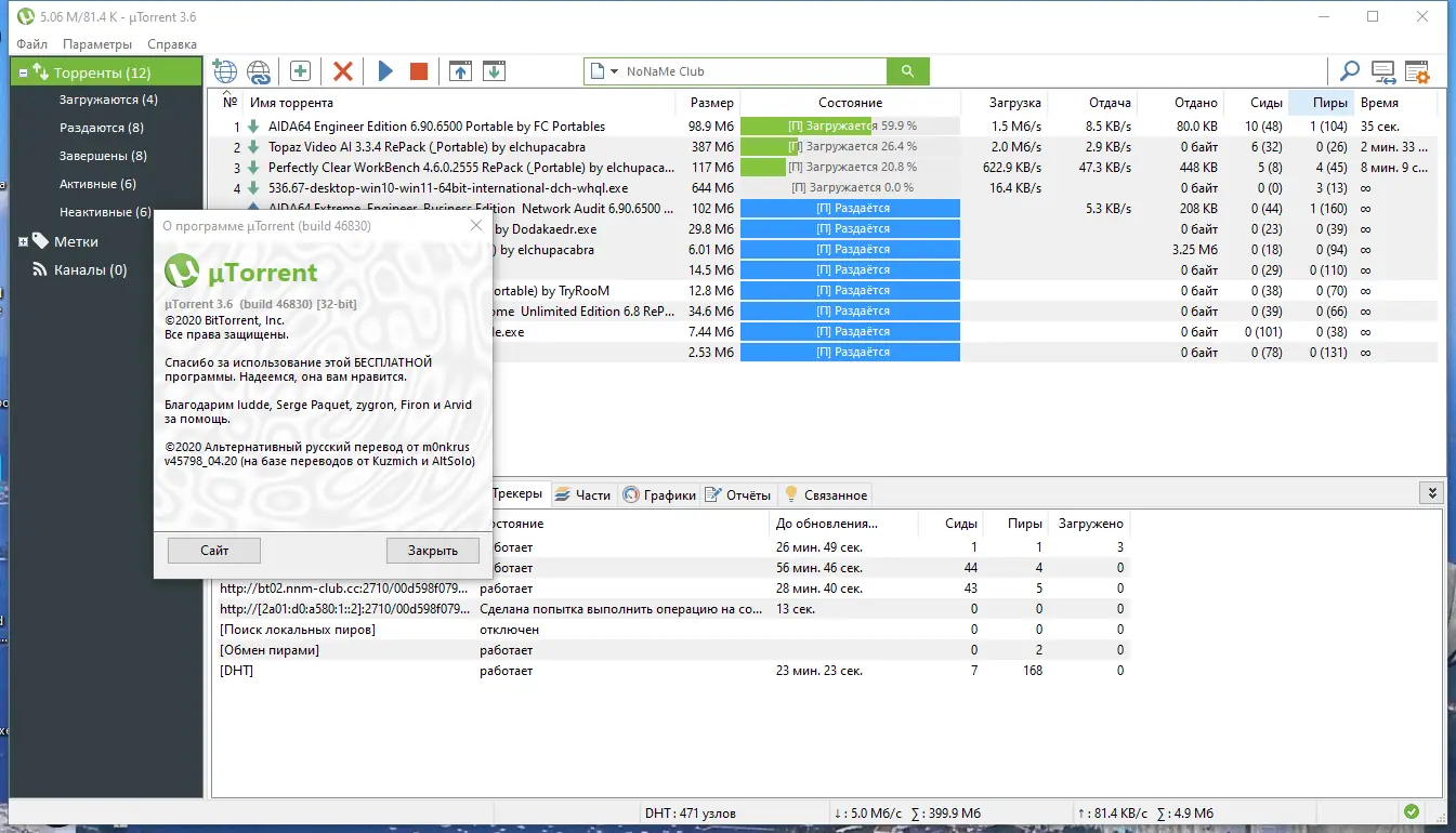 µTorrent Pack (Repack & Portable) — это универсальный торрент-клиент для работы с p2p-сетями, сочетающий высокую производительность, минимальное потребление ресурсов и расширенные настройки. Программа поддерживает многопоточную загрузку, управление пропускной способностью, удаленное управление через web-интерфейс и встроенный стриминг видео. Сборка включает несколько версий клиента, в том числе совместимые с устаревшими системами, и предлагает широкие возможности для кастомизации под нужды пользователя. Благодаря отключению рекламы, блокировке нежелательных компонентов и предустановленным оптимизациям, µTorrent остаётся одним из самых эффективных решений для загрузки файлов через торрент-протокол.
