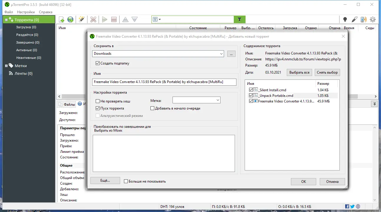 Работа с uTorrent
