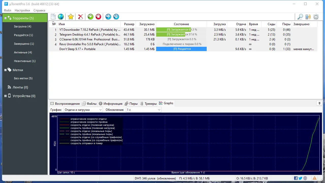 uTorrent — это легковесный, но мощный торрент-клиент, обеспечивающий стабильную и быструю загрузку файлов через сеть BitTorrent. Программа отличается минимальным потреблением системных ресурсов, поддержкой множества функций и возможностью тонкой настройки сетевого трафика, что делает её популярной среди пользователей по всему миру.