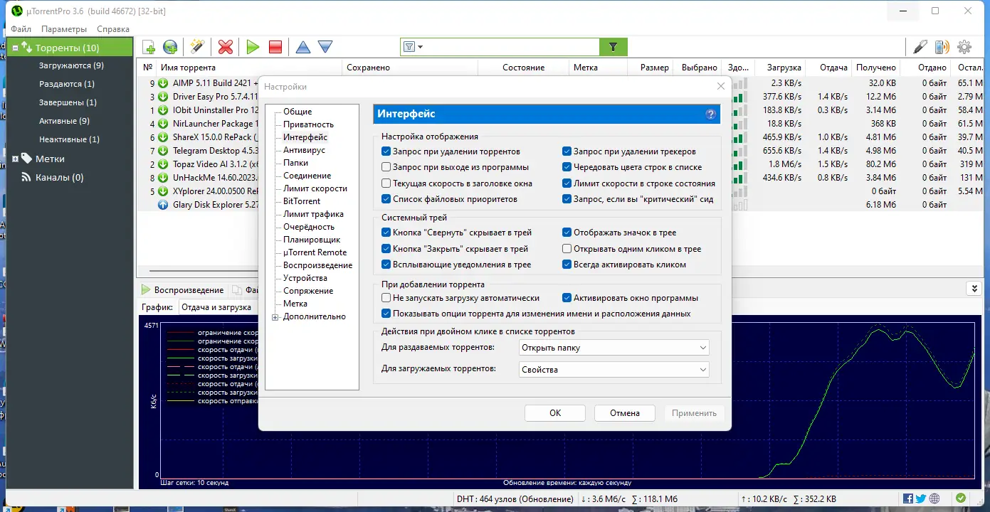 - Клиент поддерживает параллельные загрузки нескольких торрентов одновременно, распределяя ресурсы оптимальным образом.