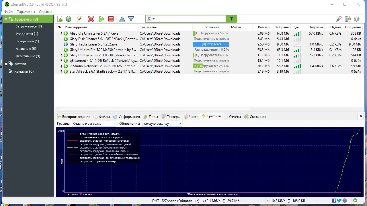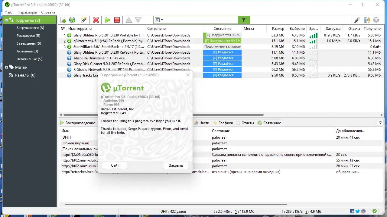 - Возможность регулировать приоритеты файлов и быстро приостанавливать или возобновлять загрузки.