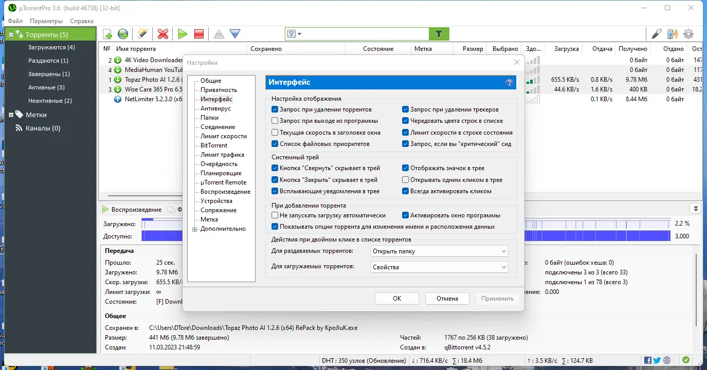 - Возможность задавать приоритеты для отдельных файлов внутри торрент-раздачи упрощает управление большими архивами.
