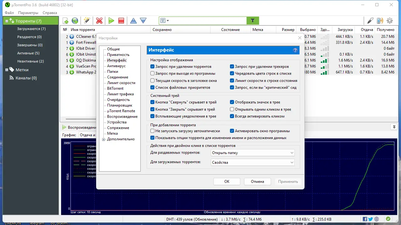 - Регулировка приоритетов трафика и возможность быстрой приостановки или возобновления загрузок.