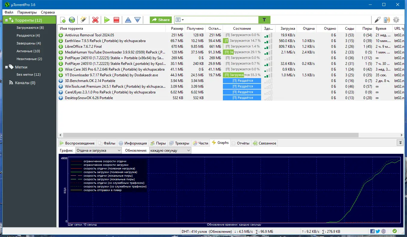 µTorrent — быстрый, удобный и компактный торрент-клиент, предназначенный для эффективной загрузки файлов по протоколу BitTorrent. Программа отличается минимальным потреблением системных ресурсов, поддерживает расширенные настройки сети и работает стабильно на всех актуальных версиях Windows. Благодаря небольшому размеру и высокой скорости соединения, утилита стала популярным решением среди пользователей, которым важно скачать контент быстро и без лишних задержек.
