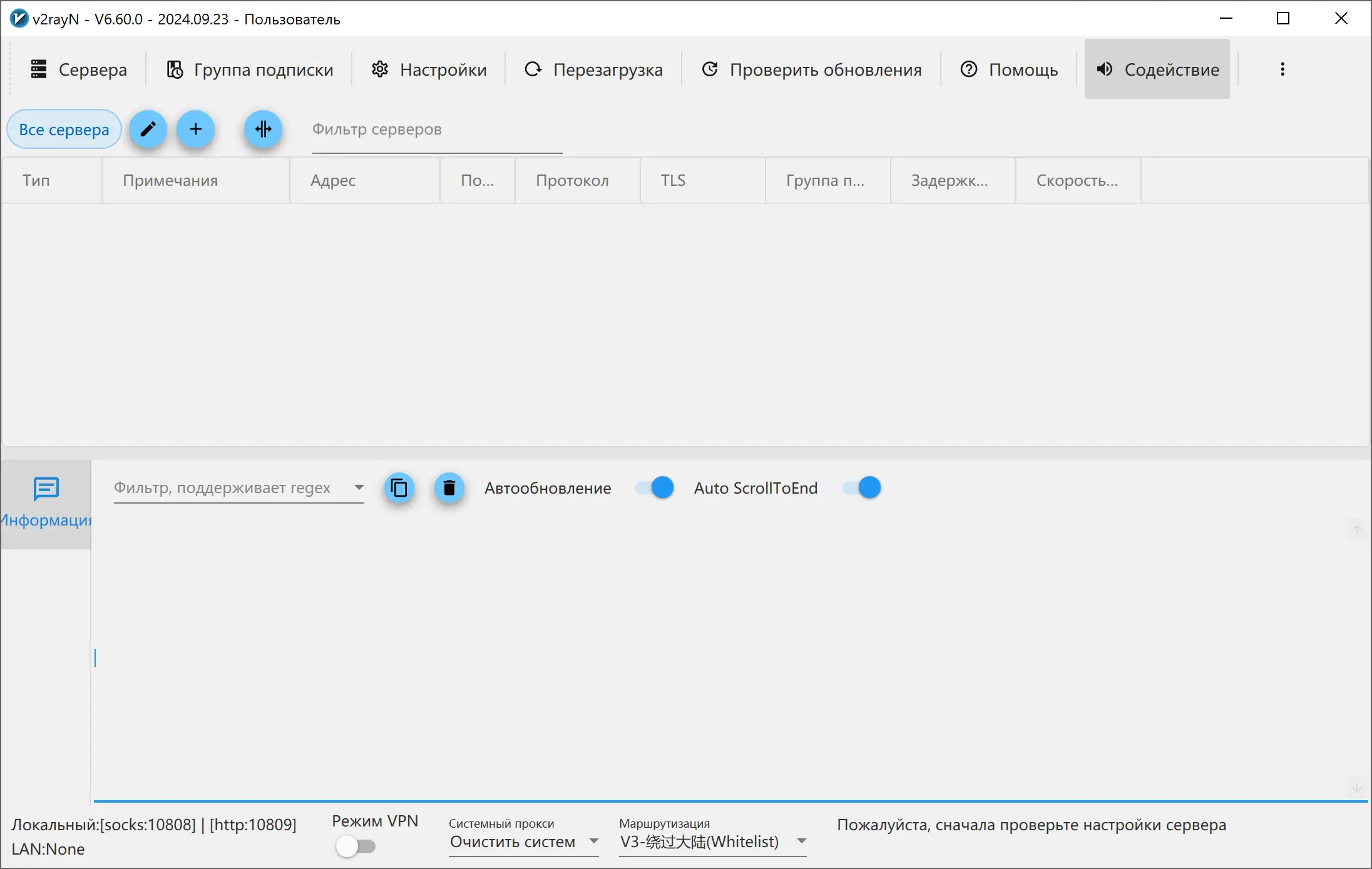 Для начала использования необходимо добавить действующий сервер, который может быть получен от провайдера или сконфигурирован самостоятельно. После запуска приложения можно перейти в настройка, чтобы вставить ссылку или вручную ввести параметры подключения, включая адрес, порт и идентификатор пользователя. После добавления сервера достаточно выбрать его из списка и активировать подключение через контекстное меню в трее.