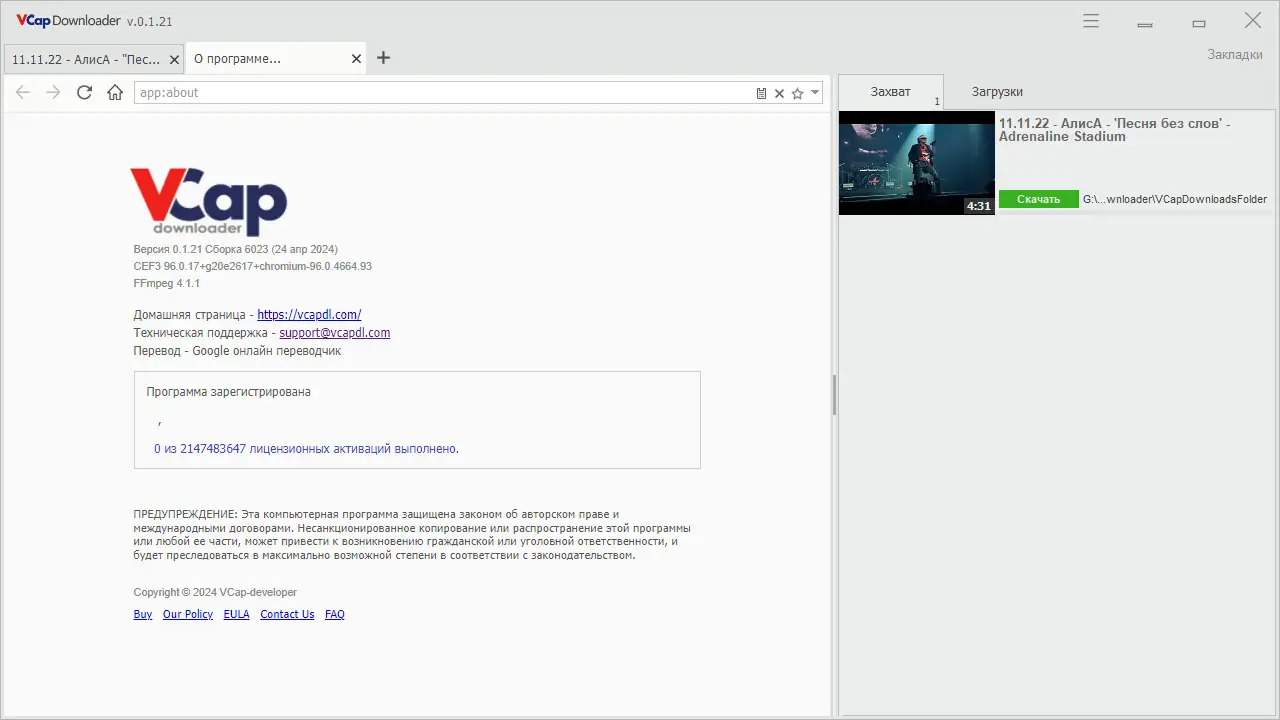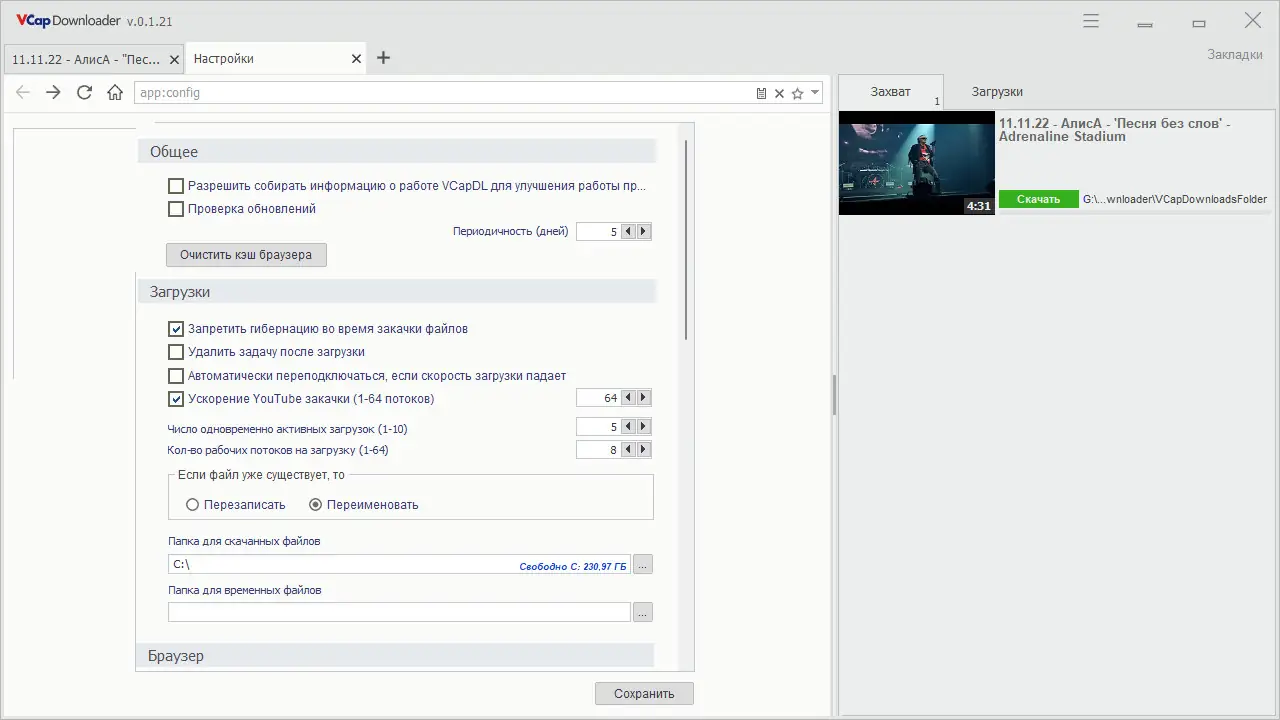 VCap Downloader — это программа для захвата видео и аудио с популярных веб-сайтов, оснащённая встроенным браузером, многопоточной загрузкой и возможностью конвертации медиаконтента. Поддерживает современные протоколы потоковой передачи и работает с мониторами 4K.