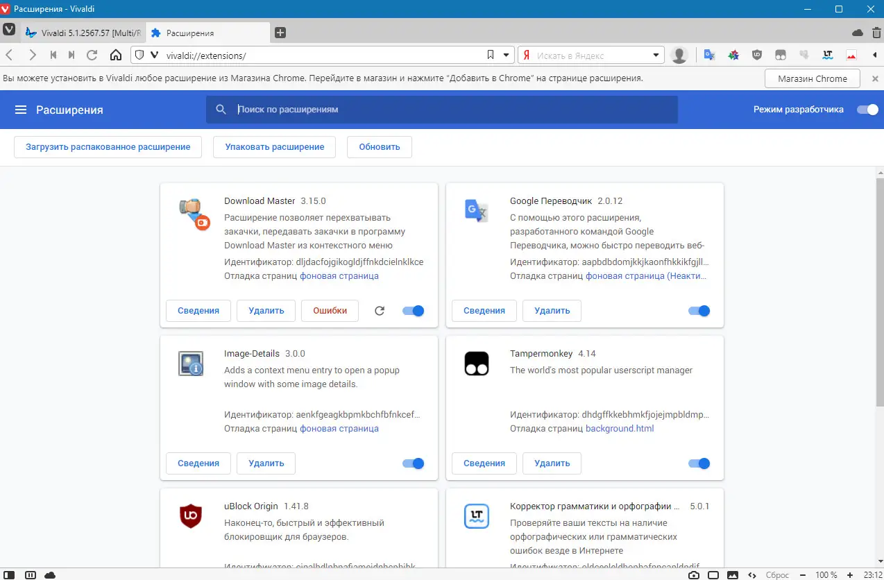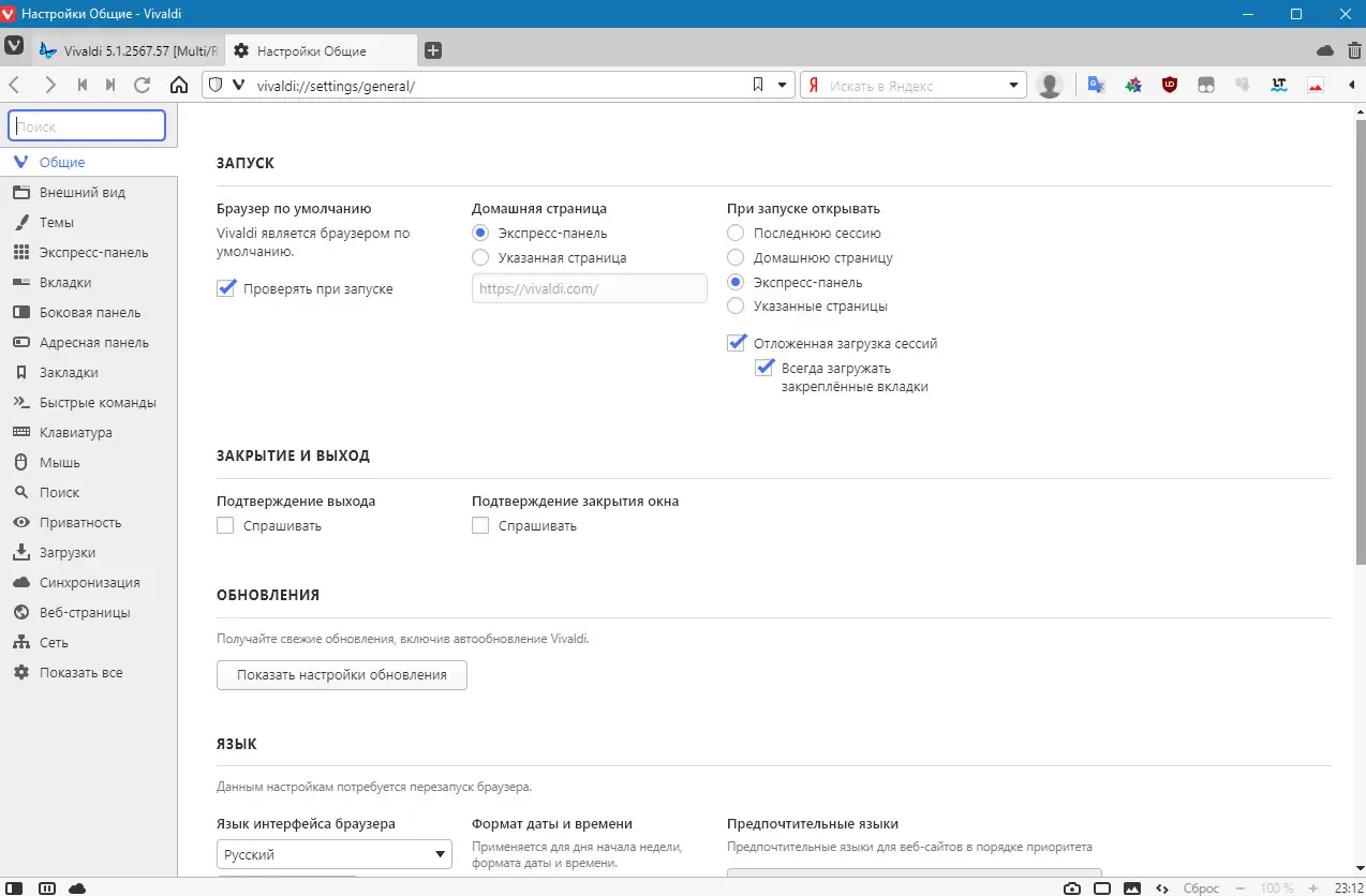 Работа с Vivaldi