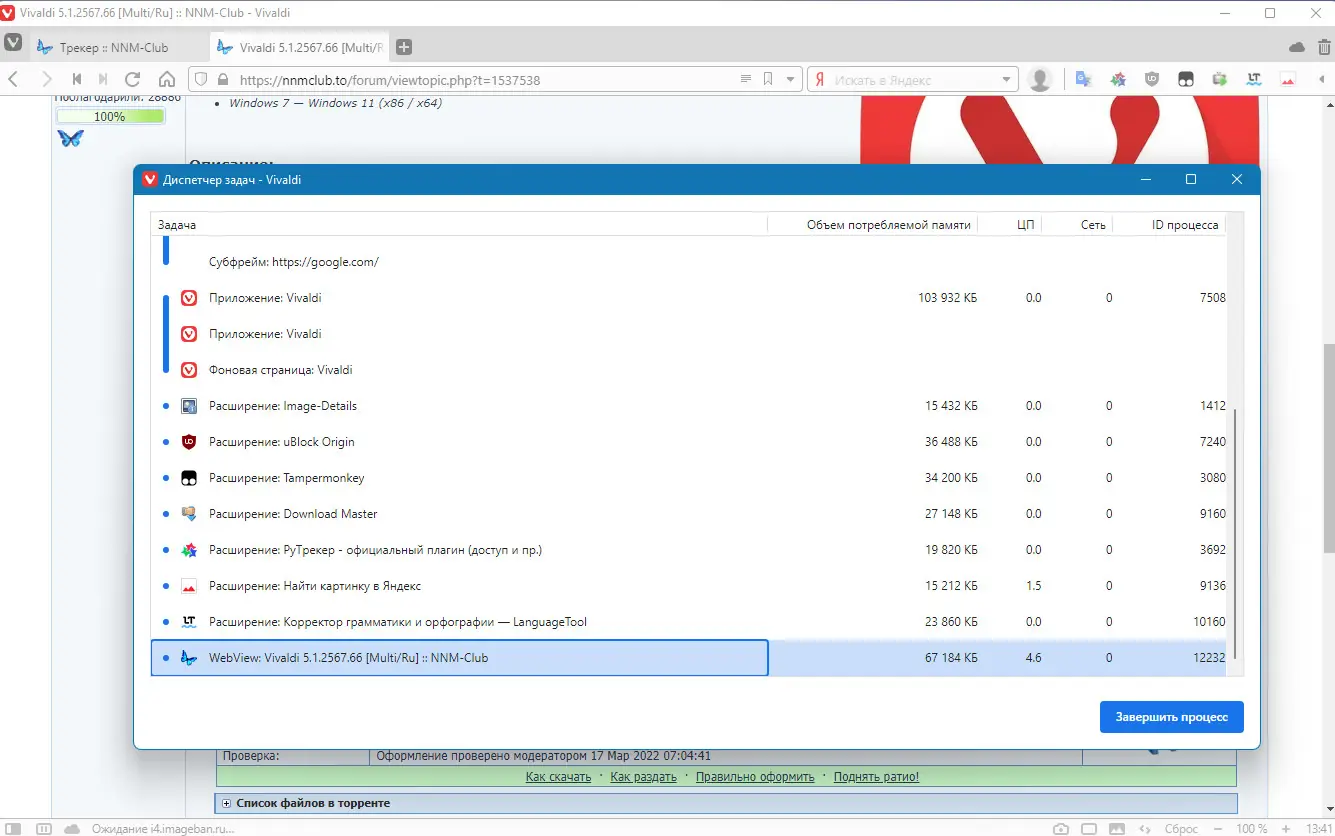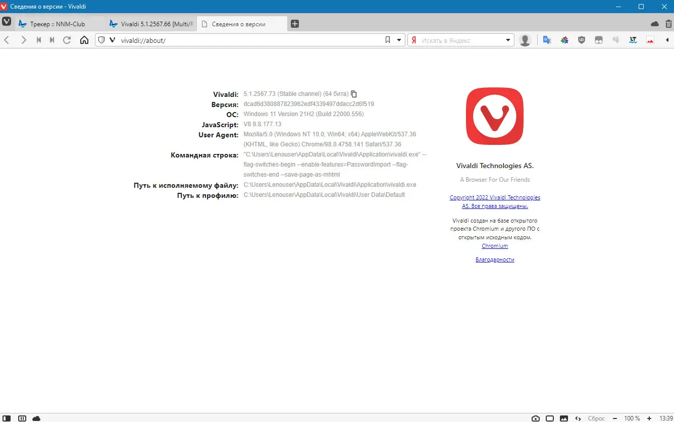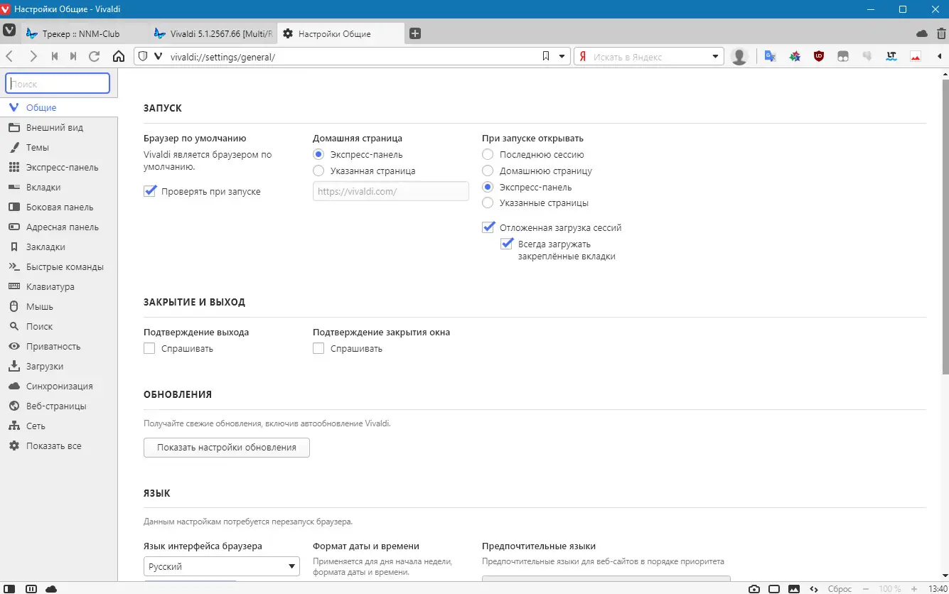 Работа с Vivaldi