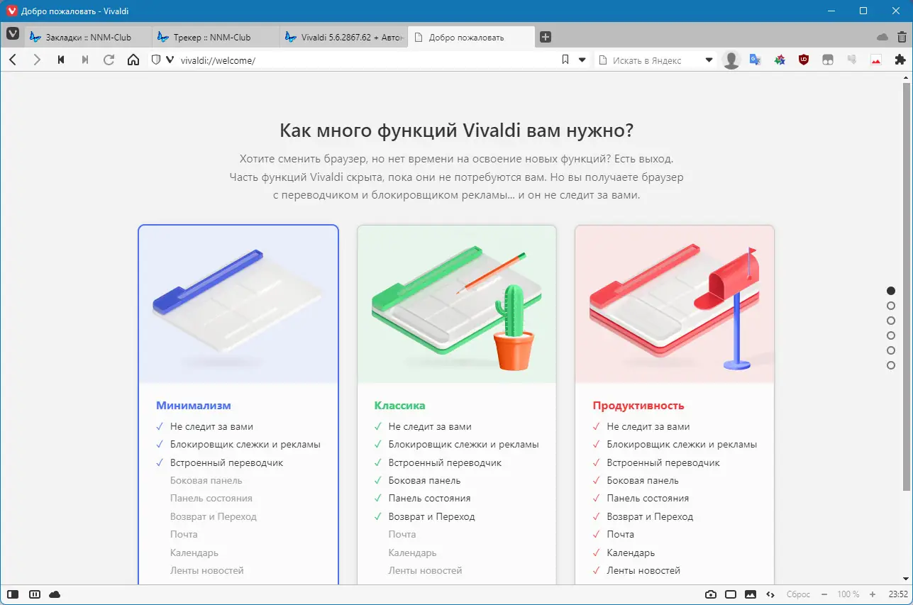 Вивальди — это веб-браузер на базе Chromium, разработанный с акцентом на гибкость, персонализацию и функциональность. Программа предлагает расширенные инструменты для управления вкладками, заметками и быстрым доступом к ресурсам, обеспечивая комфортный и продуктивный веб-серфинг.
