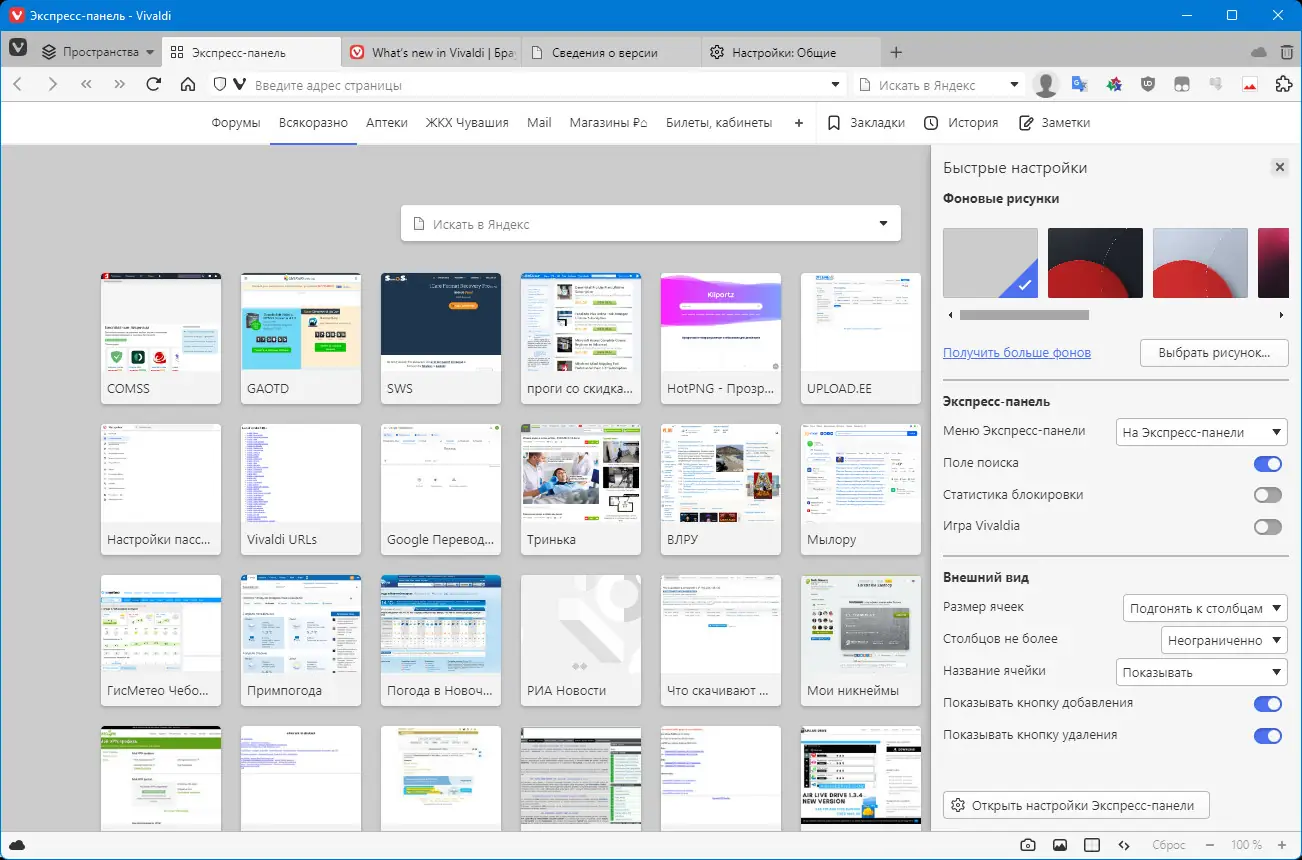- Экспресс-панель для быстрого доступа к часто посещаемым сайтам