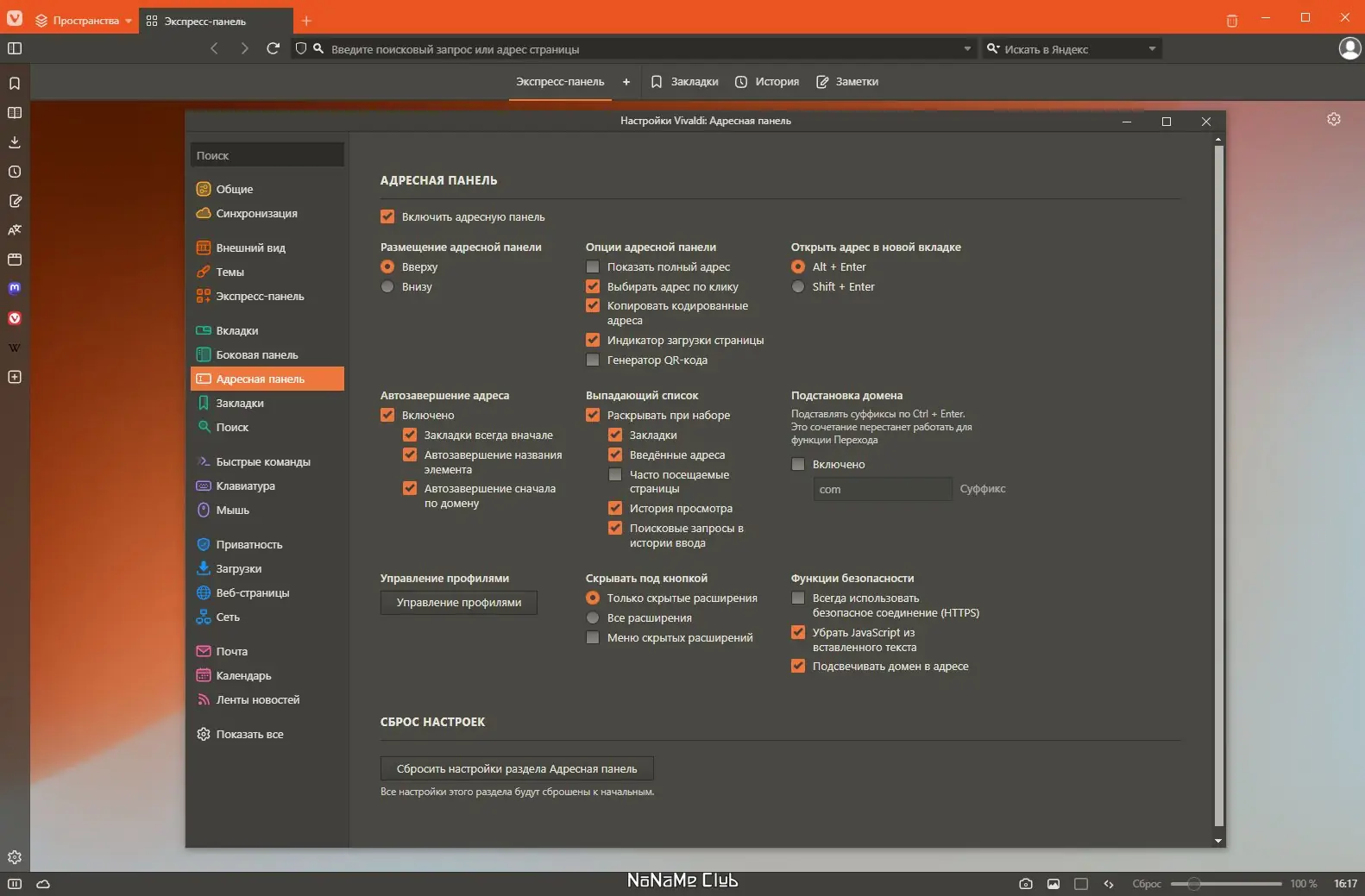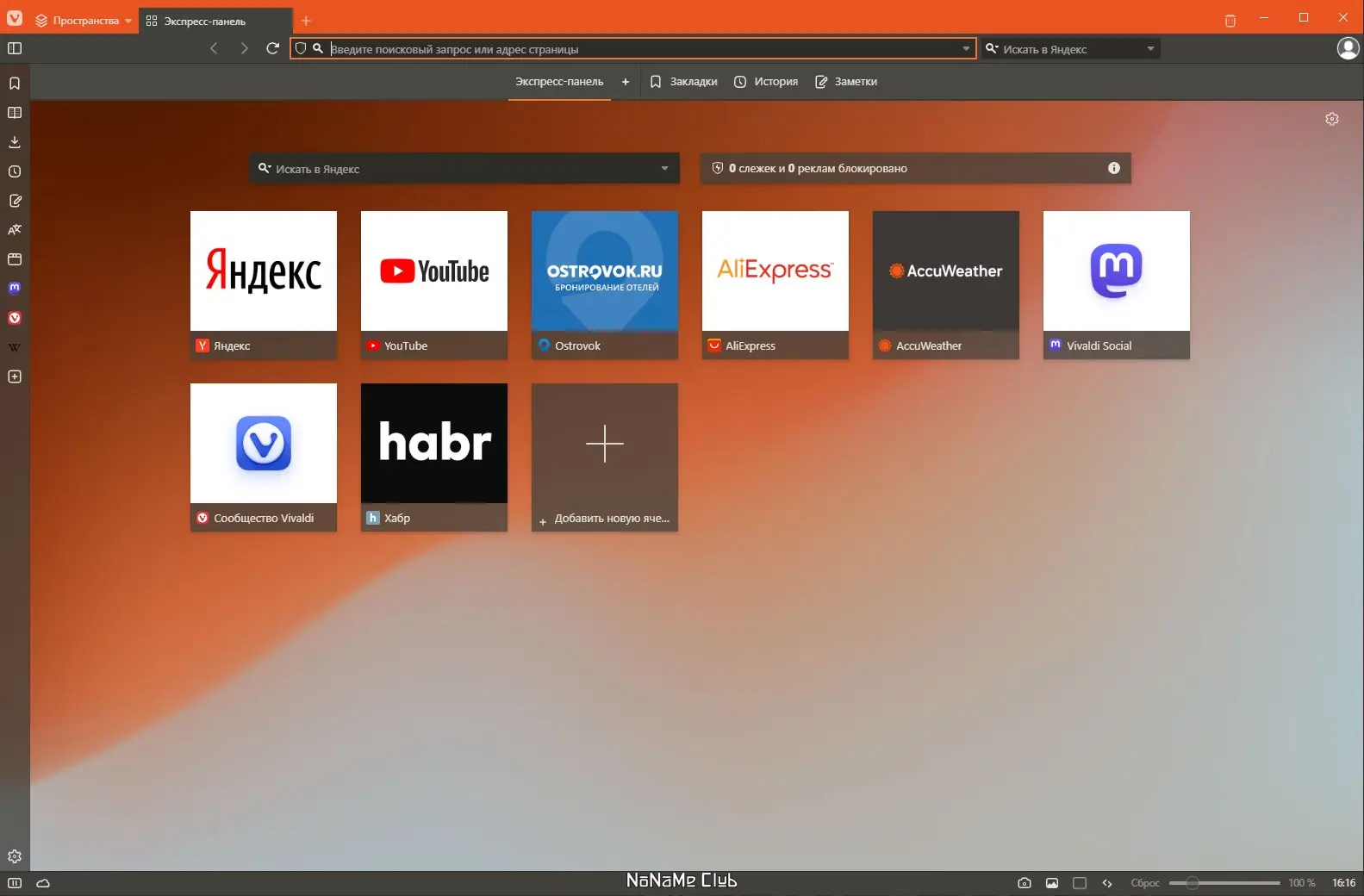 - Экспресс-панель для быстрого доступа к часто посещаемым сайтам