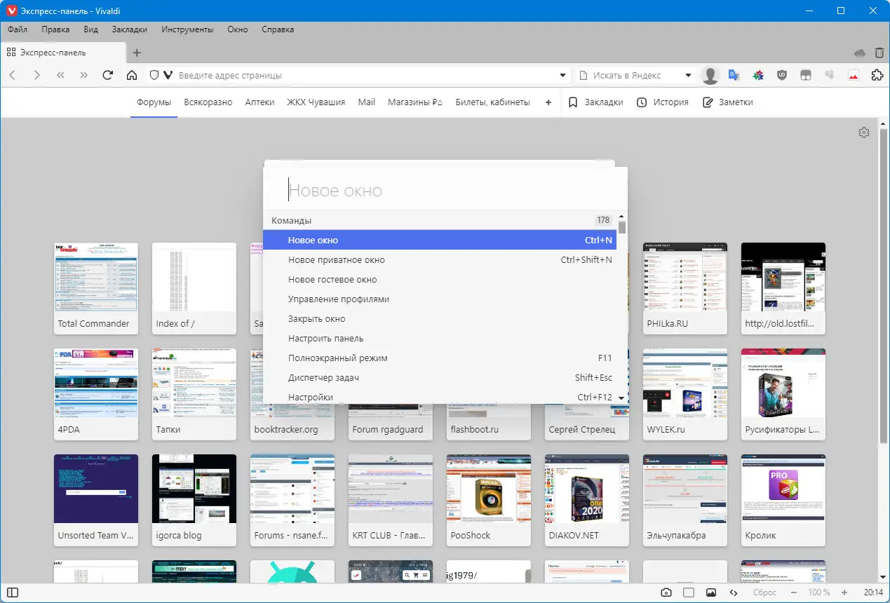 Работа с браузером начинается с настройки интерфейса под индивидуальные предпочтения. Пользователь может переносить панели инструментов, включать прокручиваемые вкладки и настраивать жесты-манипуляторы. Быстрые команды активируются сочетанием клавиш и открывают доступ к закладкам, истории, вкладкам и настройкам. Заметки можно создавать прямо из контекста просмотра, прикрепляя к ним URL и теги. Экспресс-панель позволяет структурировать доступ к сайтам по тематикам, создавая группы и папки. Группировка вкладок упрощает работу с множеством открытых страниц — достаточно перетащить одну вкладку на другую, чтобы объединить их. В новой версии также появилась поддержка рабочих областей и редактируемых значков, что делает навигацию ещё удобнее.