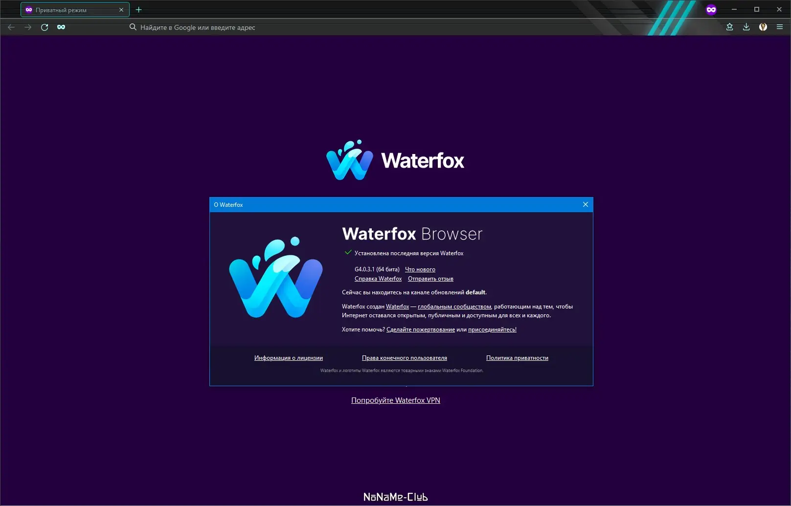 Waterfox — это высокопроизводительный браузер, созданный на основе исходного кода Mozilla Firefox и адаптированный для 64-разрядных систем Windows. Программа обеспечивает быструю загрузку страниц, стабильную работу с множеством вкладок и расширенную поддержку дополнений, что делает её надёжным инструментом для серфинга в интернете.