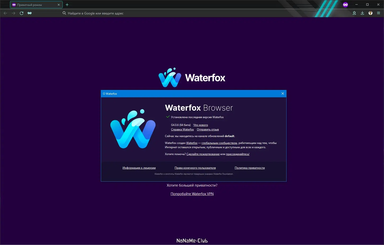 Waterfox — это высокопроизводительный browser, созданный на базе исходного кода Mozilla Firefox и оптимизированный для 64-разрядных систем. Благодаря глубокой адаптации под современную архитектуру, браузер демонстрирует ускоренную работу, быструю загрузку страниц и стабильность даже при интенсивном использовании множества вкладок и расширений.