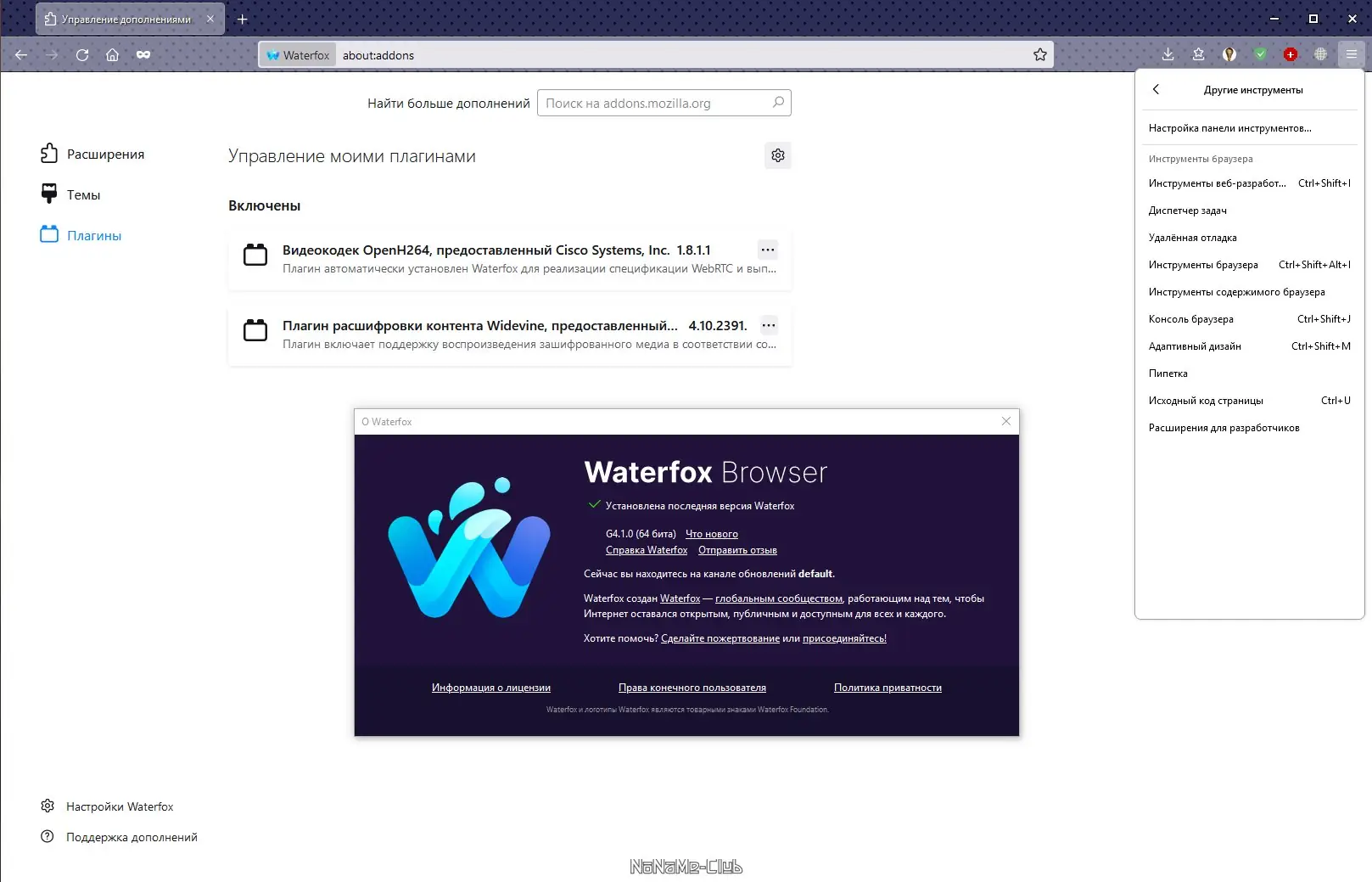 Waterfox сочетает в себе классическую архитектуру и современные возможности, обеспечивая высокую скорость и стабильность работы.