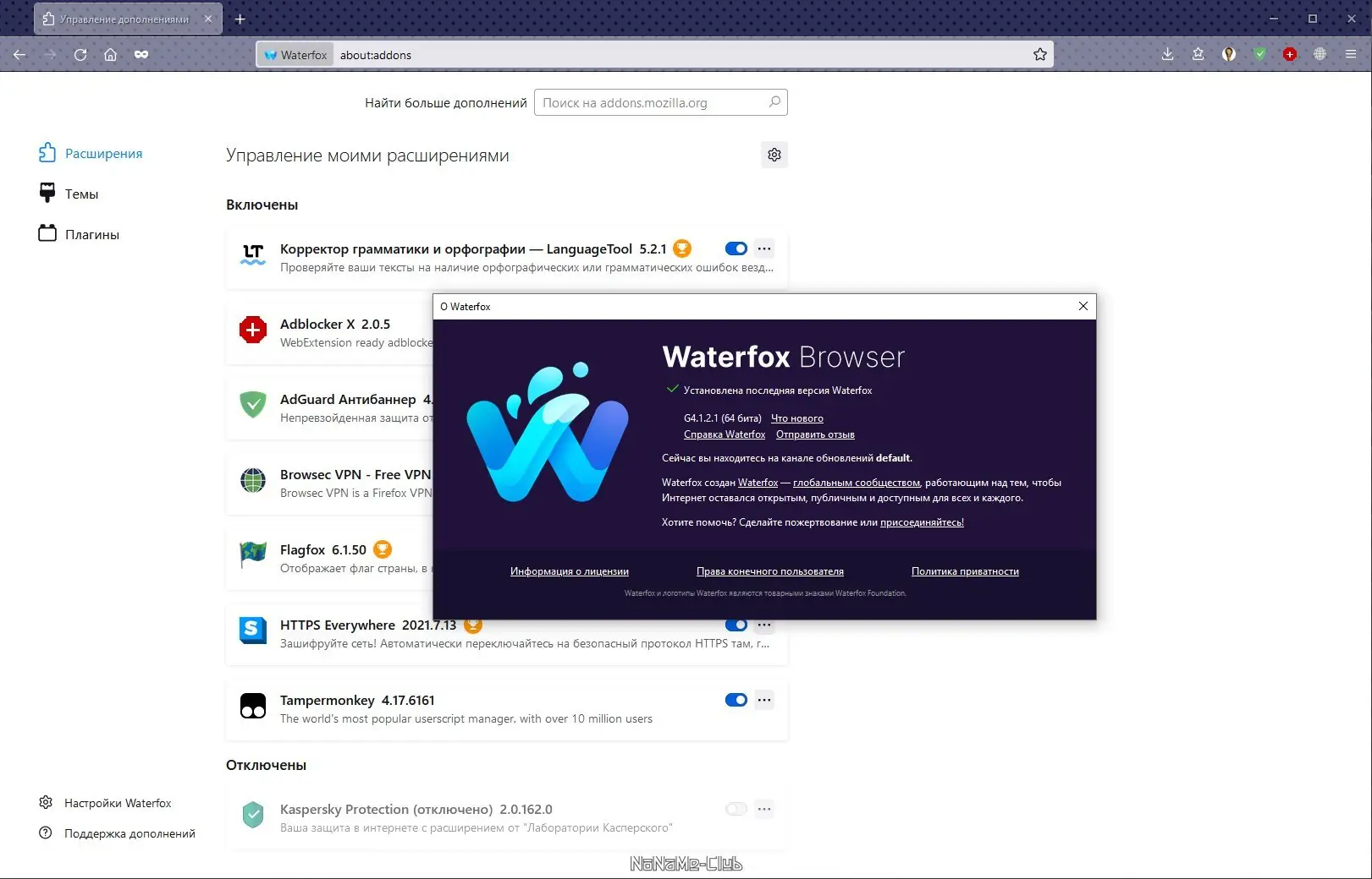 Как пользоваться Waterfox