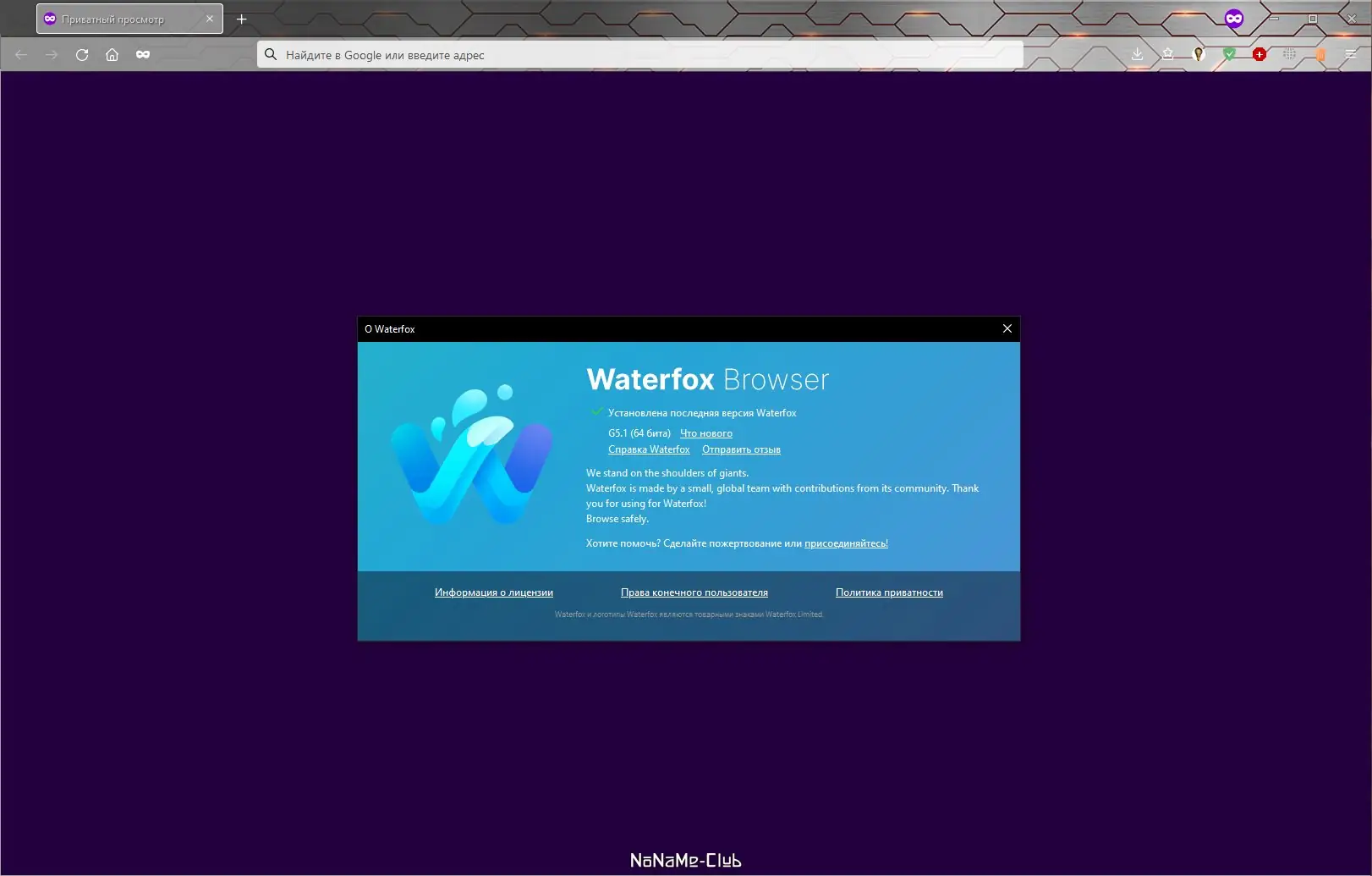 Waterfox — это высокопроизводительный browser, созданный на основе исходного кода Mozilla Firefox и оптимизированный для 64-разрядных систем. Программа сочетает в себе скорость, стабильность и полную совместимость с расширениями, обеспечивая комфортный веб-серфинг.